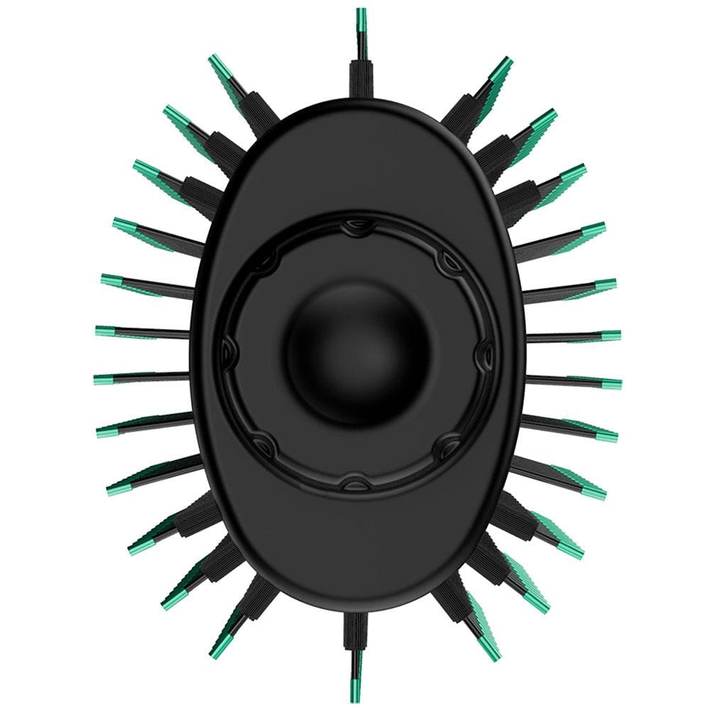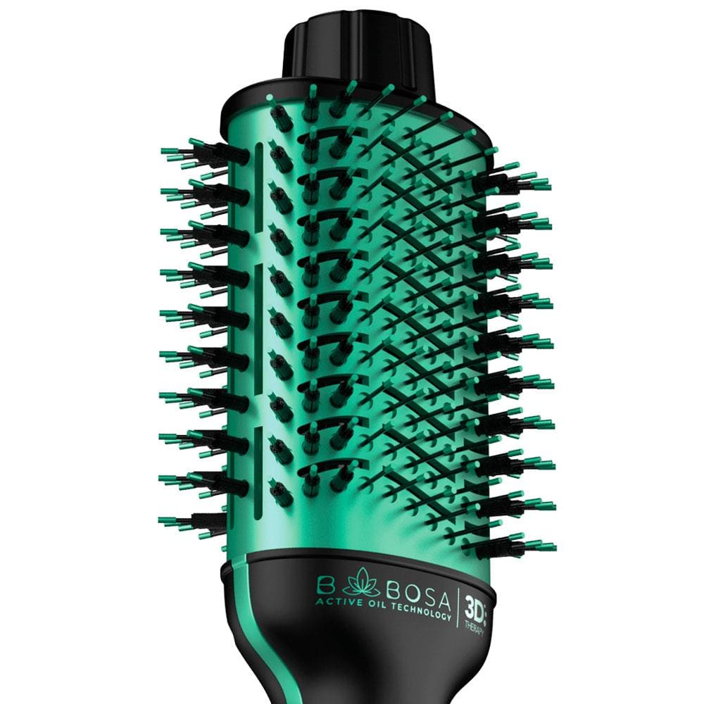 A Escova Secadora GA.MA Italy Babosa Brush 3D Bivolt - Preta/Verde 1200/1300w de potência, 2 velocidades, 3 temperaturas, ponta fria, design leve e ergonômico e cabo giratório 360° com alça para pendurar.