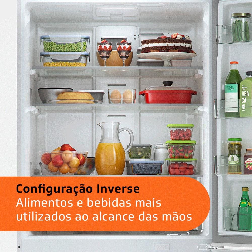 Altíssima capacidade, funcionalidade, comodidade e elegância na sua cozinha com a Geladeira Brastemp Inverse BRE85AB. São 588 litros de capacidade para você armazenar e organizar os alimentos e bebidas de uma maneira inteligente e prática. E, com configuração Inverse (refrigerador em cima e freezer embaixo), tudo fica muito mais fácil de acessar no dia a dia. Seu painel Touch Black traz funções especiais como festa, compras e férias, além de controle de temperatura, garantindo mais praticidade. Esta moderna Geladeira da Brastemp conta, também, com o Twist Ice Advanced – que permite desenformar o gelo com apenas um giro. Para manter verduras e legumes frescos e organizados, utilize o gavetão Fresh Box e, para armazenar alimentos mais delicados como frutas e frios, conte com o compartimento Delicates. E mais! Gele taças e mantenha as bebidas na temperatura ideal ao servir, aproveitando os espaços dedicados no freezer. Este moderno Refrigerador da Brastemp conta também com Carbon AirFilter - tecnologia que filtra o ar e neutraliza odores indesejados em seu interior. Uma geladeira completa, eficiente, espaçosa e funcional para revolucionar a sua cozinha. Aproveite e garanta a sua agora mesmo!
