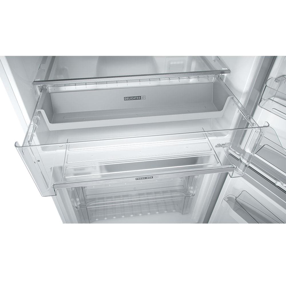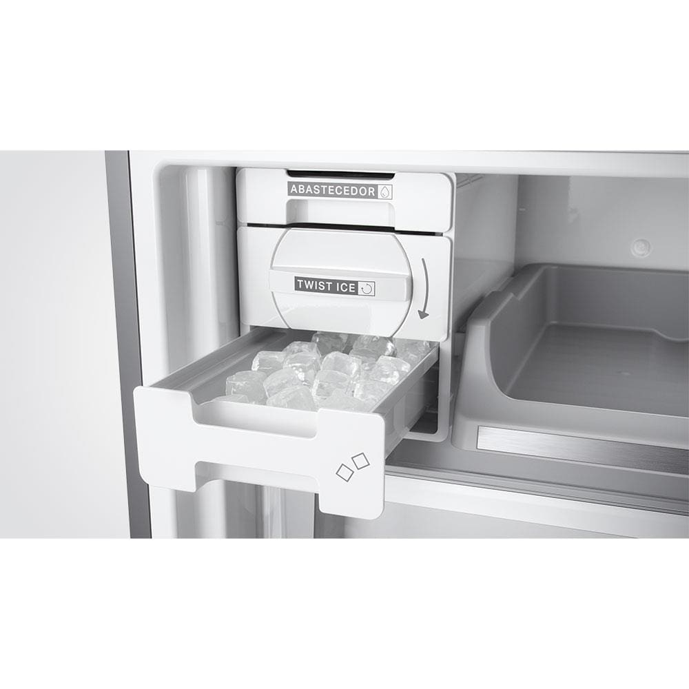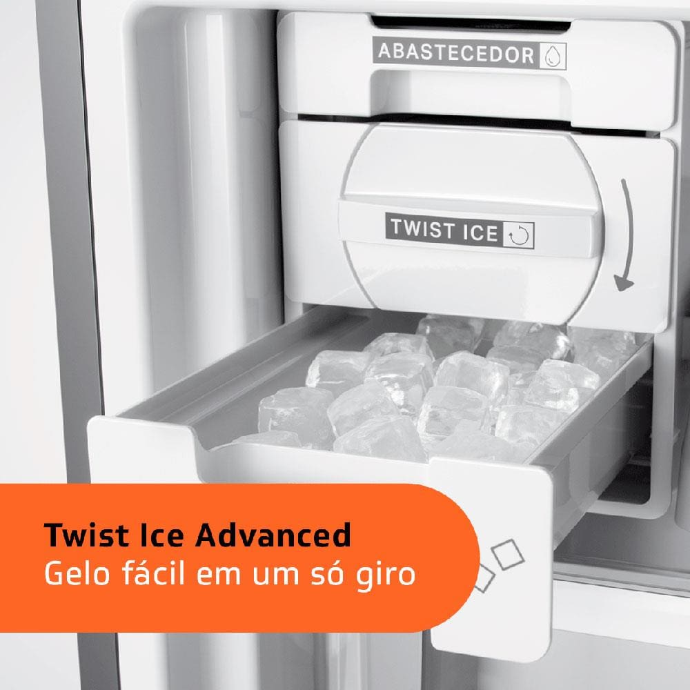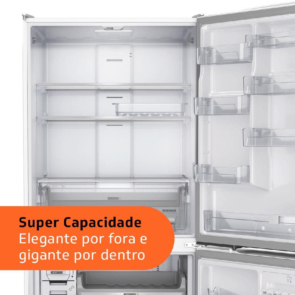 Características Gerais: Super Capacidade Elegante por fora e gigante por dentro. São 588 litros para armazenar e organizar alimentos de maneira inteligente. Configuração Inverse Design moderno, com freezer embaixo e refrigerador em cima, deixando os alimentos e bebidas mais utilizados ao alcance das mãos. Painel Touch Black Com funções especiais, controle de temperatura e mais sofisticação para a sua cozinha. Twist Ice Advanced Abastecedor de água independente, não deixa a água cair e desenforma o gelo com apenas um giro. Carbon AirFilter Tecnologia que filtra o ar e neutraliza odores indesejados no interior da geladeira. *Filtro com membrana plissada com carvão ativado que ajuda a neutralizar os odores do refrigerador. Fresh Box Gavetão com alta capacidade para manter seus alimentos frescos e organizados. Delicates Compartimento especial para manter os alimentos mais delicados protegidos. Infinity Shelves Maior visibilidade e design sofisticado dentro do refrigerador. Taças Nevadas Compartimento especial para gelar as taças e manter as bebidas na temperatura ideal ao servir. Refrigerador: - Número de prateleiras, cestos e gavetas: 12 - 1 Porta-ovos removível - Porta garrafas - Iluminação LED Freezer: - Número de prateleiras, cestos e gavetas: 5 - 2 Formas de gelo - Compartimento de congelamento rápido - Compartimento para gelo - Suporte para taças - Dreno de degelo - Iluminação LED Acabamento: - Prateleiras do refrigerador em vidro com perfil traseiro em plástico extrudado e perfil frontal em plástico extrudado e acabamento metalizado. Prateleiras de porta e cestos delicates em plástico injetado. Gaveta de legumes em plástico injetado e acabamento metalizado. - Prateleiras do freezer e prateleiras de porta em plástico injetado. Cesto turbo zone em plástico injetado e acabamento metalizado - Puxador embutido em plástico injetado, pintado e acabamento metalizado Ajustes: - Pés ajustáveis - Pés com rodízios Especificações de controle segurança: - Tipo de painel: externo touch - Função trava painel - Aviso de porta aberta - 5 níveis de temperatura no refrigerador - 5 níveis de temperatura no freezer Especificações elétricas/energéticas: - Classificação energética: A++ - Nível de ruído (dBA): 48