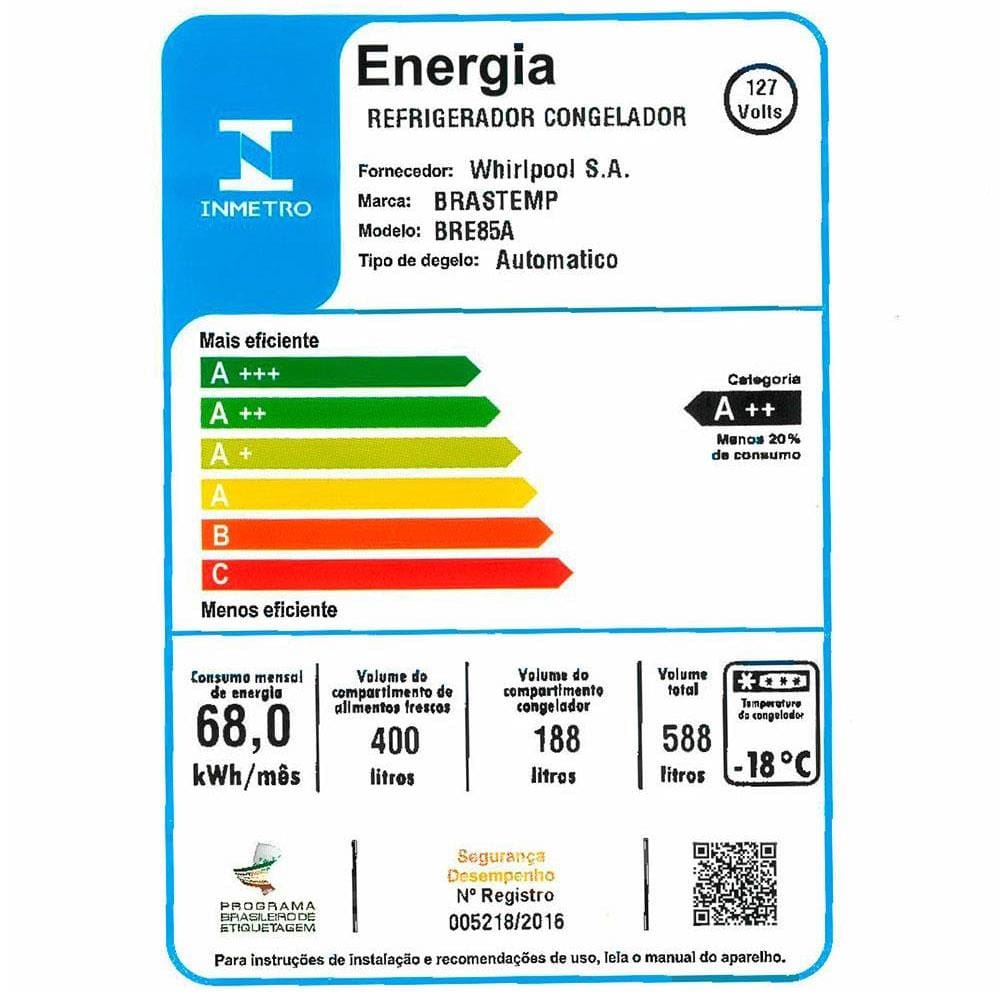 Conteúdo da embalagem: - 1 Geladeira Brastemp Inverse BRE85AB 588 L - Branca - 1 Guia Rápido - 1 Manual de Instruções