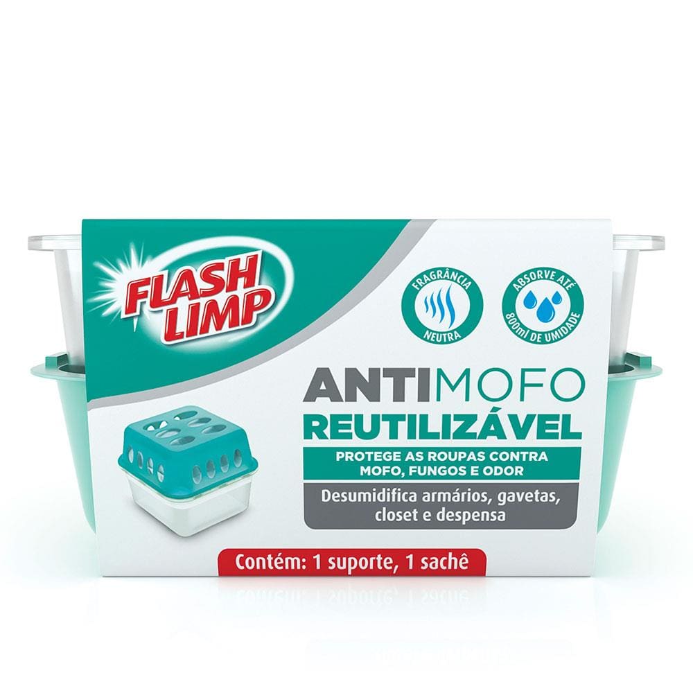 O Antimofo FlashLimp absorve a umidade dos ambientes, evitando que roupas e outros objetos sejam acometidos por mofo, fungos e odor. Ideal para desumidifica armários, gavetas, closet e despensa, sem fragrância, absorve até 800 ml de umidade. Proteja suas roupas e sua saúde com Antimofo Reutilizável FlashLimp.