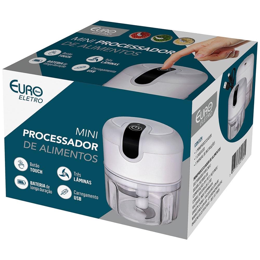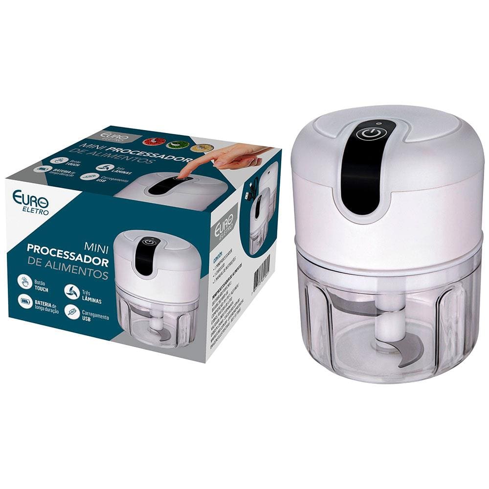 Mini Processador de Alimentos Euro 3 Lâminas Cabo USB - Branco