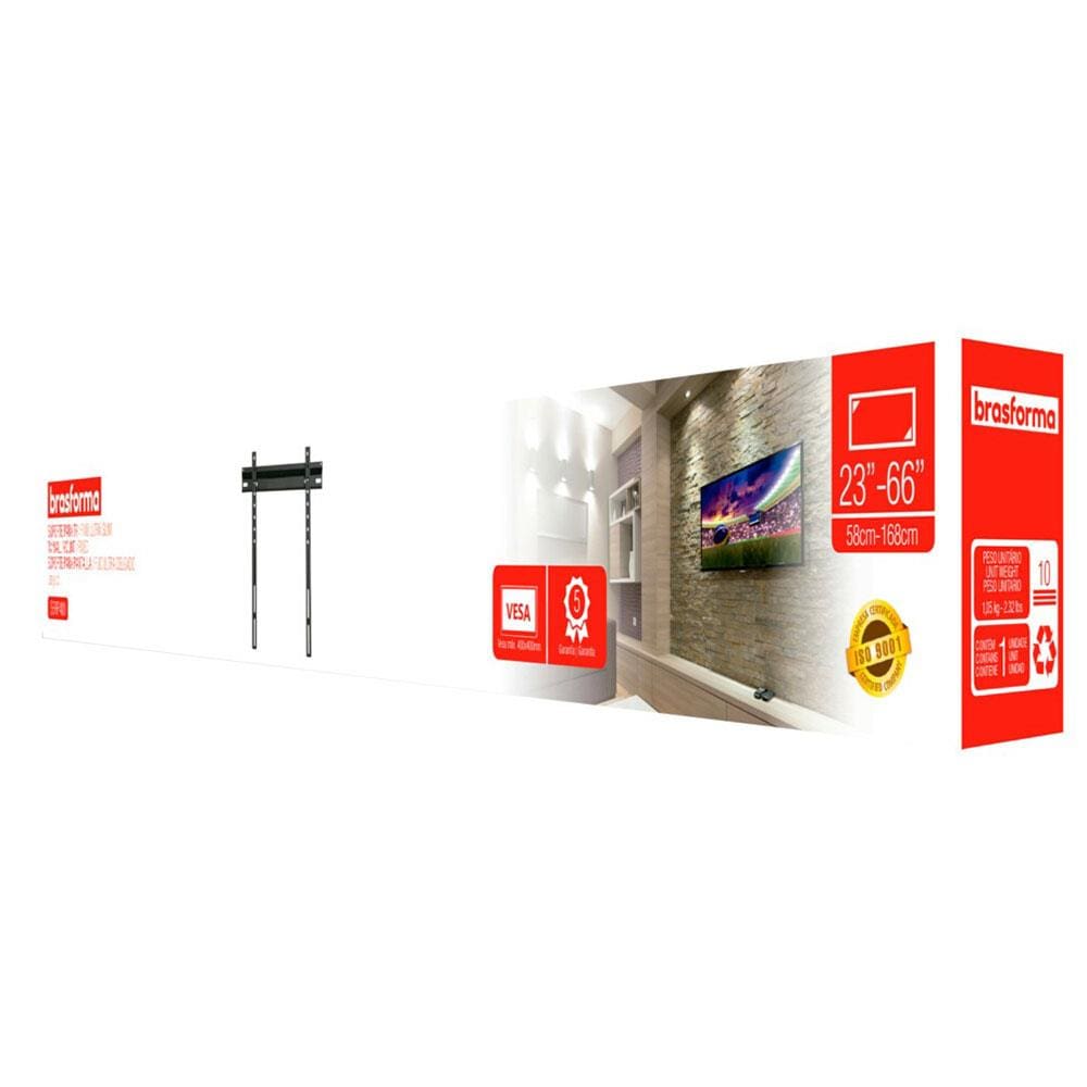 Suporte de Parede Fixo Ultra Slim Brasforma SBRP400 para TVs LED, LCD, Plasma, 3D e Smart TV de 23" a 66"