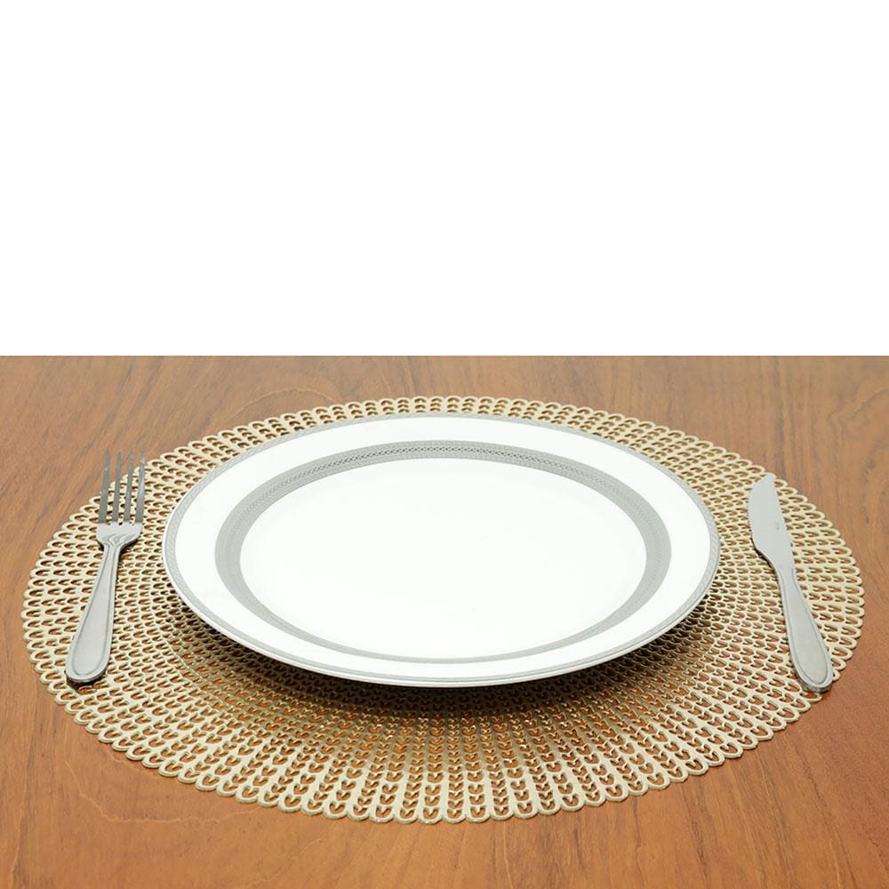Com um acabamento dourado impecável, ele traz uma sensação de luxo e requinte a qualquer ambiente. Com uma altura de apenas 0,5 cm, ele é discreto e não interfere na estética da mesa, mas ainda assim garante uma proteção eficiente contra arranhões e manchas. Com 0,5 cm de altura, 41,5 cm de largura e 41,5 cm de comprimento, ele é adequado para uma variedade de tamanhos de pratos e talheres, tornando-o uma escolha certa para qualquer ocasião.