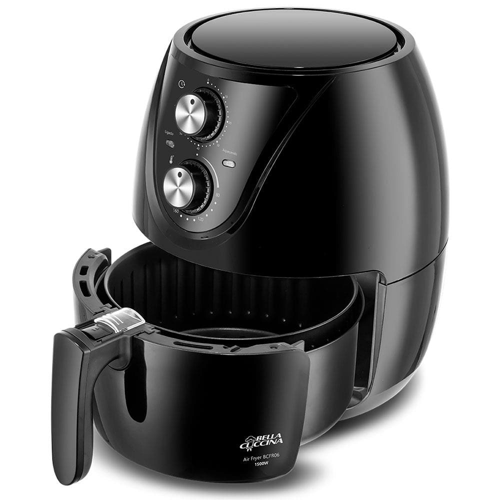 Conteúdo da Embalagem: - 1 Fritadeira Air Fryer Bella Cuccina BCFR06 3,5L - Preta.