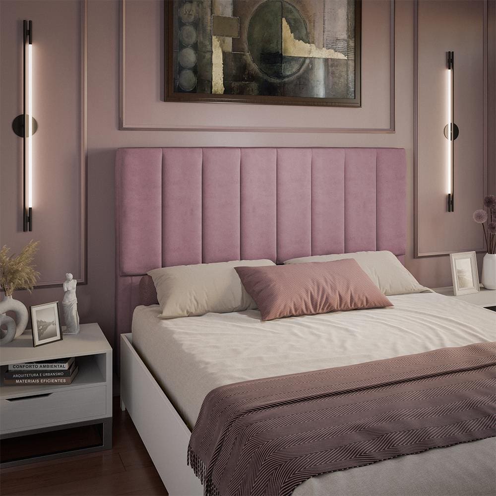 Cabeceira para Cama Box Queen Dobuê Veneza com Revestimento em Veludo