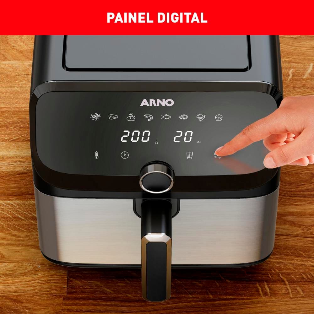 Fritadeira Elétrica Sem Óleo Air Fryer Arno AFD7 7,5L Mega Digital – Inox/Preta