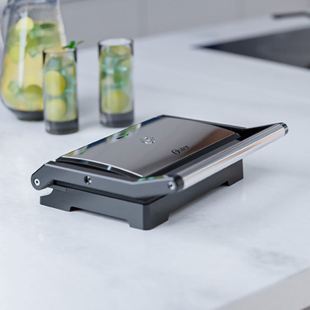 Mini Grill Elétrico Oster OGRL230 2 em 1 com abertura 180° - Inox