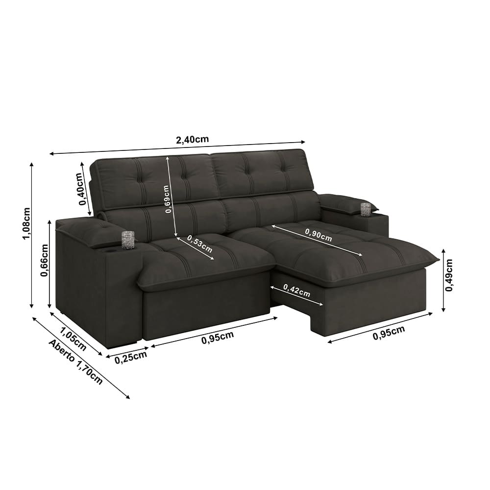 Características Gerais: -Sofá retrátil e reclinável com porta copos;