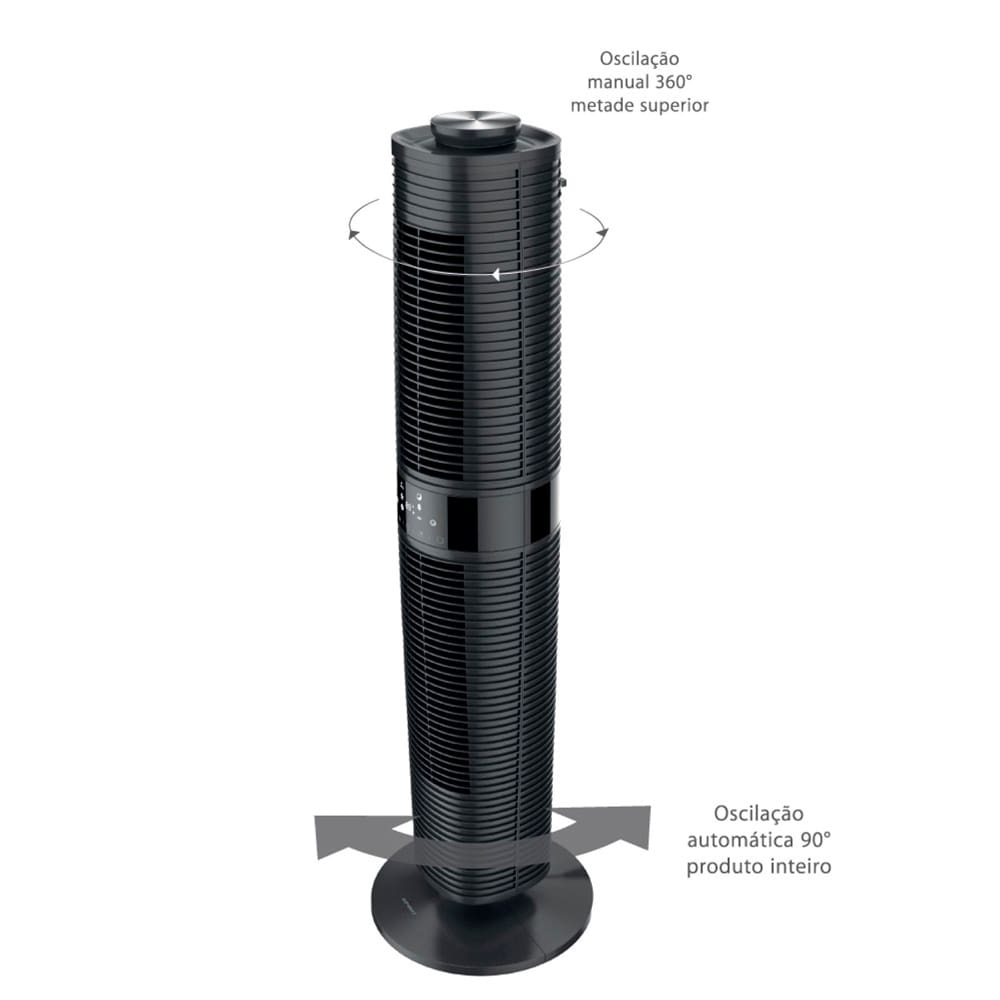 Ventilador de Torre 100cm Spirit 360º com Display LED Touch Screen, Controle Remoto, Funções Especiais e Controle Inteligente de Velocidade - Preto