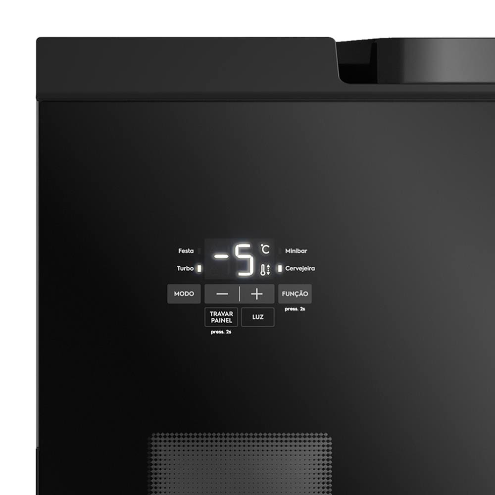 Ideal para armazenar diferentes tipos de bebidas, com controle digital de temperatura e modos específicos como Turbo, Festa e Trava Painel, garantindo bebidas sempre na temperatura perfeita — mesmo com várias aberturas de porta durante o uso.