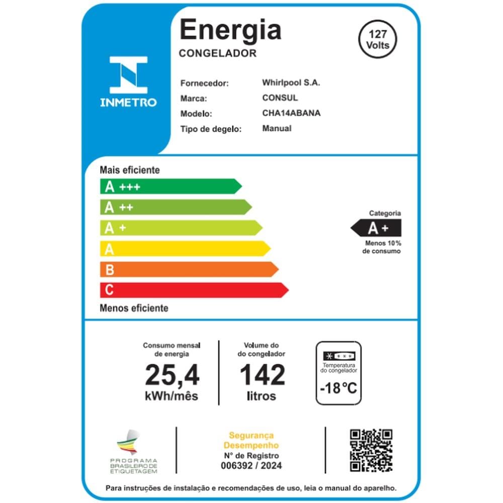 Fácil de usar, econômico e com visual moderno, o Freezer Consul CHA14AB vai se tornar um aliado indispensável na sua rotina.