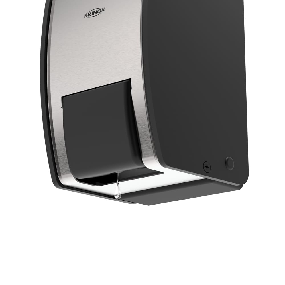 O Dispenser de Parede para Sabonete Álcool Gel Brinox Decorline combina aço inox escovado e polipropileno preto em um design sofisticado. Com capacidade de 800ml, possui sistema com chave, ejetor econômico de 0,4ml e fácil instalação.
