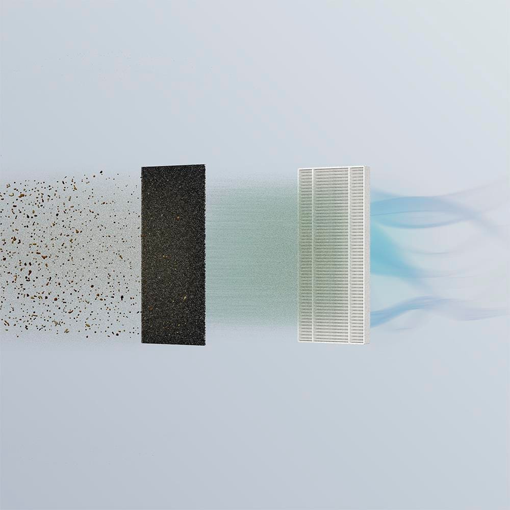 Sua dupla filtragem com filtro HEPA retém pó, ácaros e micropartículas, devolvendo um ar mais puro para sua casa. Compacto e superfino, com apenas 10cm de altura, alcança facilmente debaixo de camas, sofás e móveis baixos.