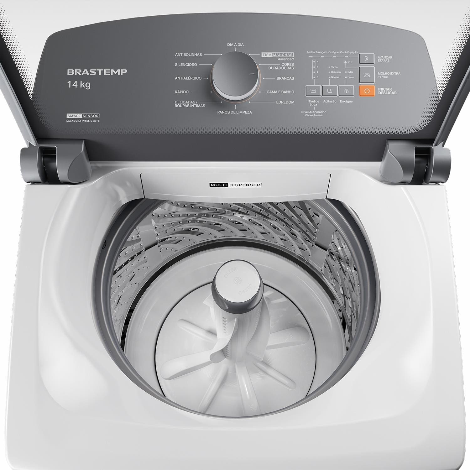 Lavadora de Roupas Brastemp BWF14AB 14kg Smart Sensor Ciclo Tira Mancha Cesto Inox Branca