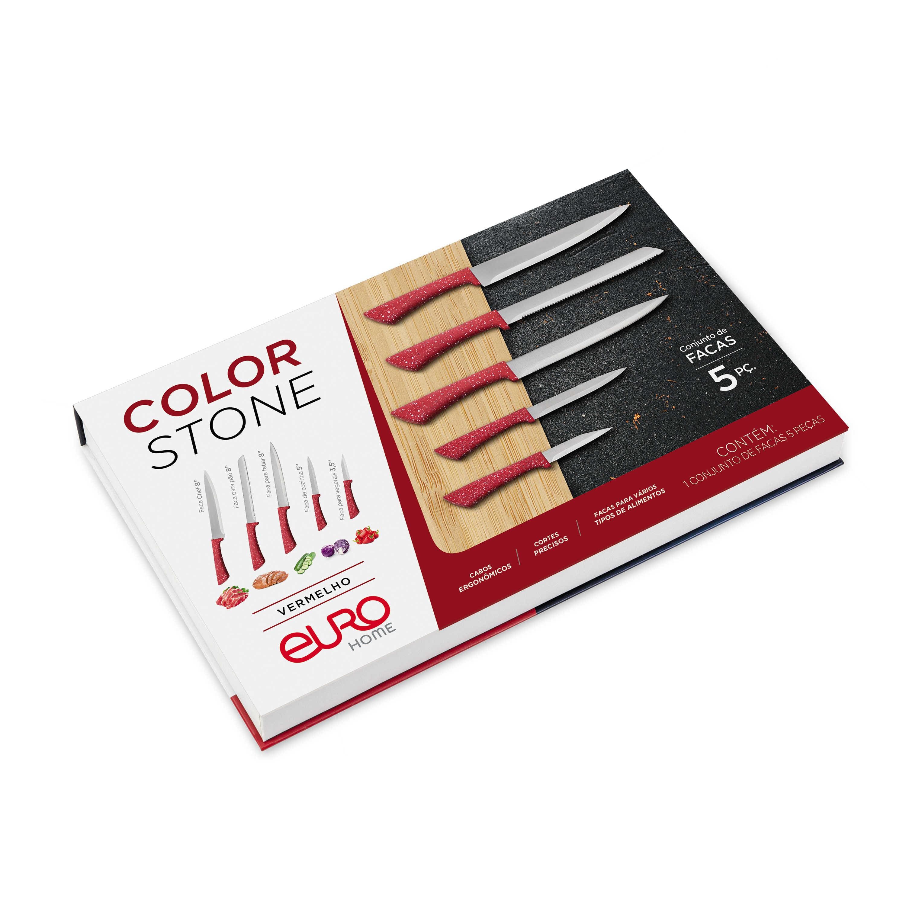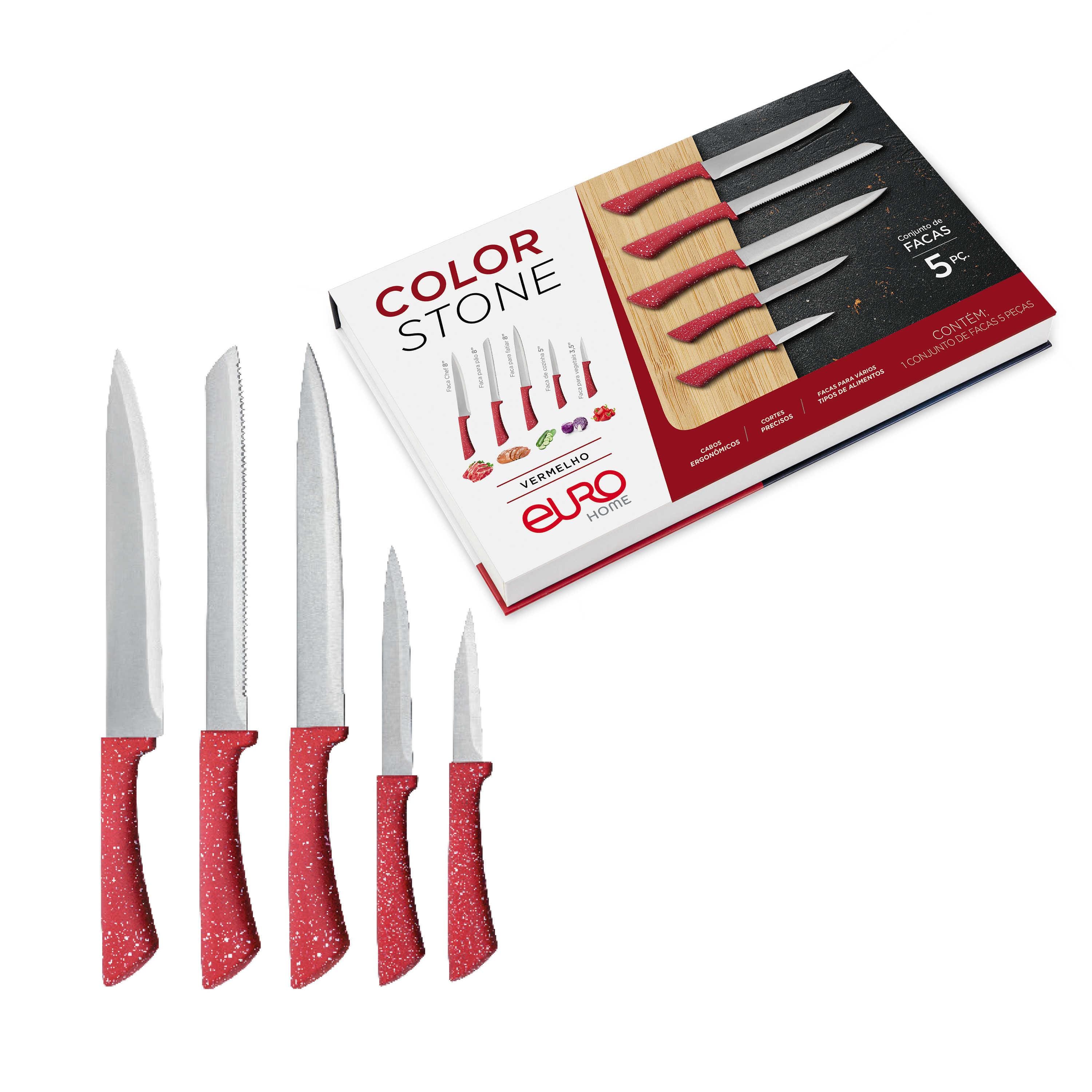 Conjunto Facas Euro Home Colorstone 5 Peças Aço Inox Cabo Ergonômico Design Moderno