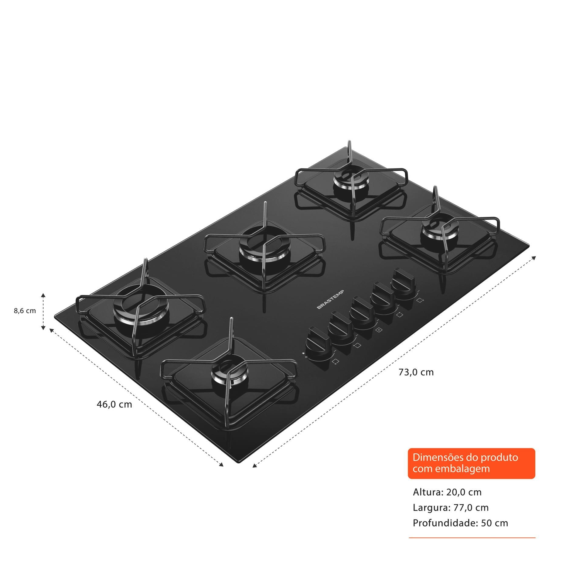 Cooktop 5 Bocas Brastemp BDD75BE Mesa de Vidro Grade de Aço Ferro Aramado Bivolt Preto
