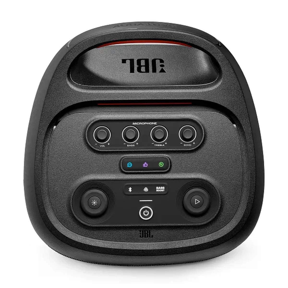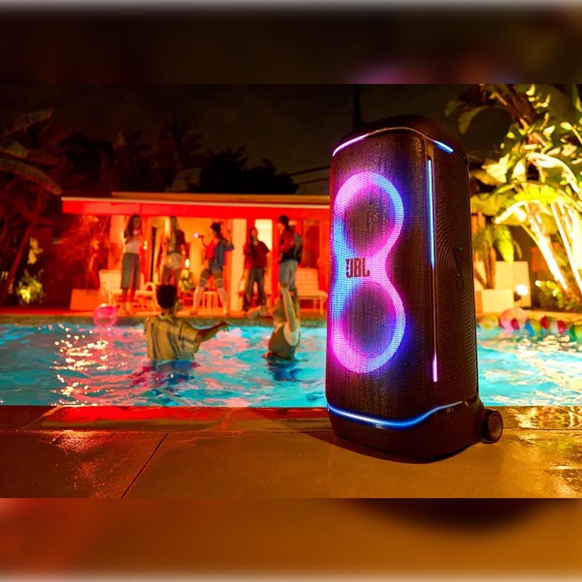 - Recursos: Som JBL Pro, show de luzes futurista, Auracast, App JBL PartyBox