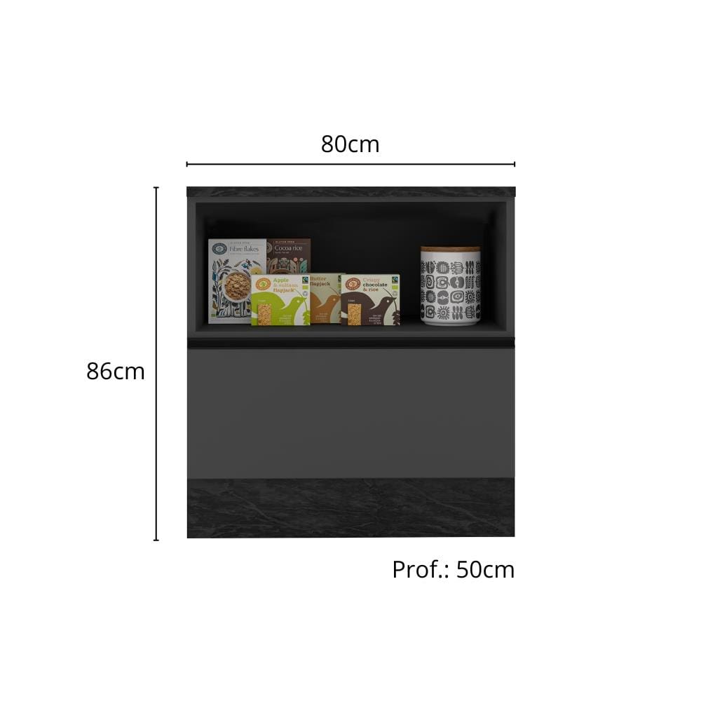 Balcão de Cozinha Poliman Etna 80cm 1 Porta 1 Gaveta com Tampo Grafite