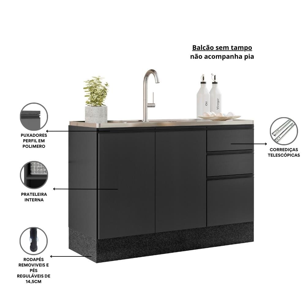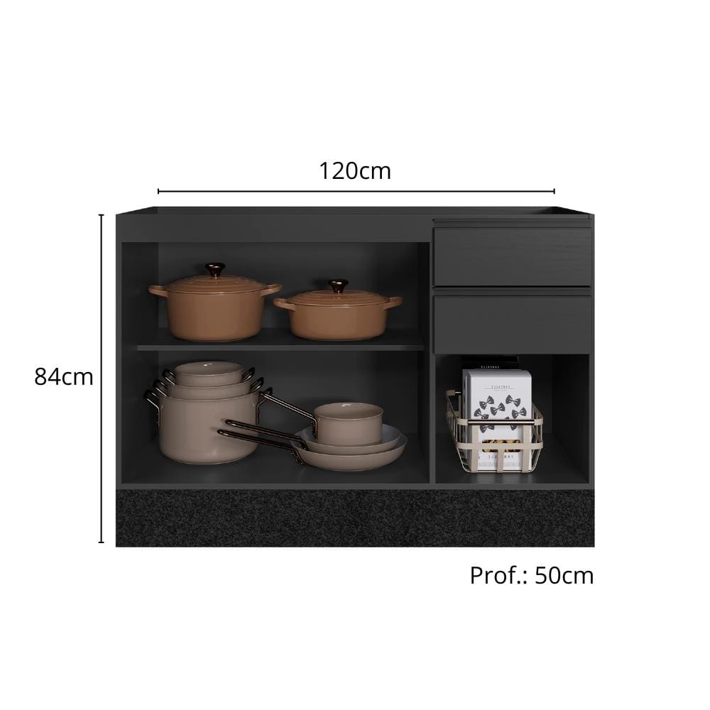 Balcão de Cozinha Poliman Etna 120cm 3 Portas 2 Gavetas Grafite