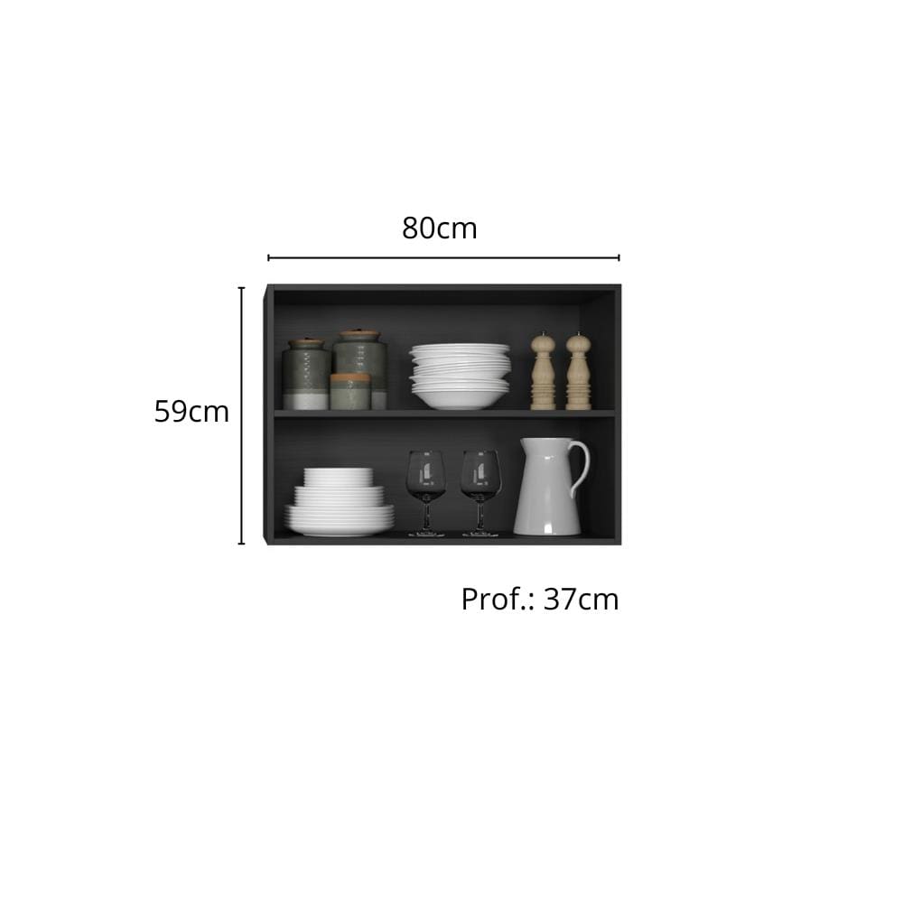 Armário Aéreo Poliman Etna 80cm 2 Portas com Prateleira Interna Grafite