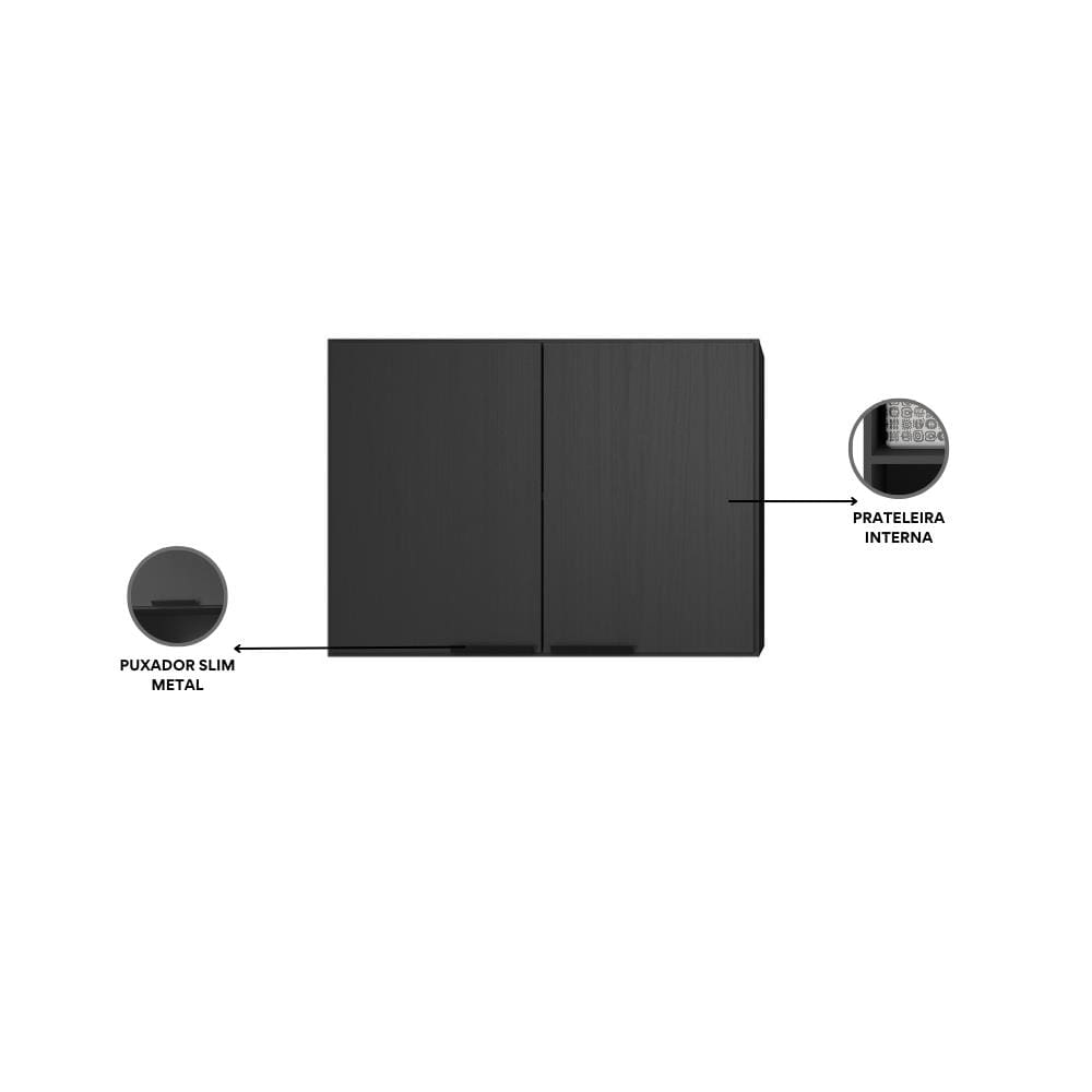 - Puxadores: Slim metal preto