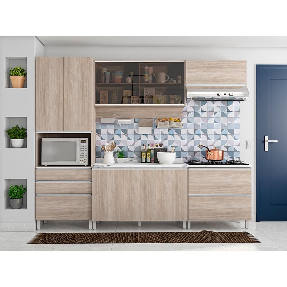 Cozinha Completa Bartira Amazonita com 9 Portas, 4 Gavetas e 7 Prateleiras - 271,2cm de largura