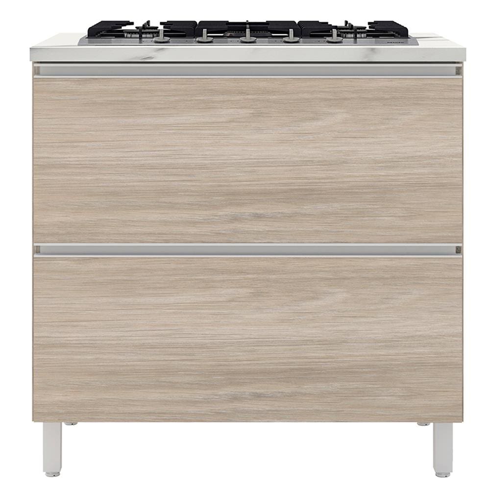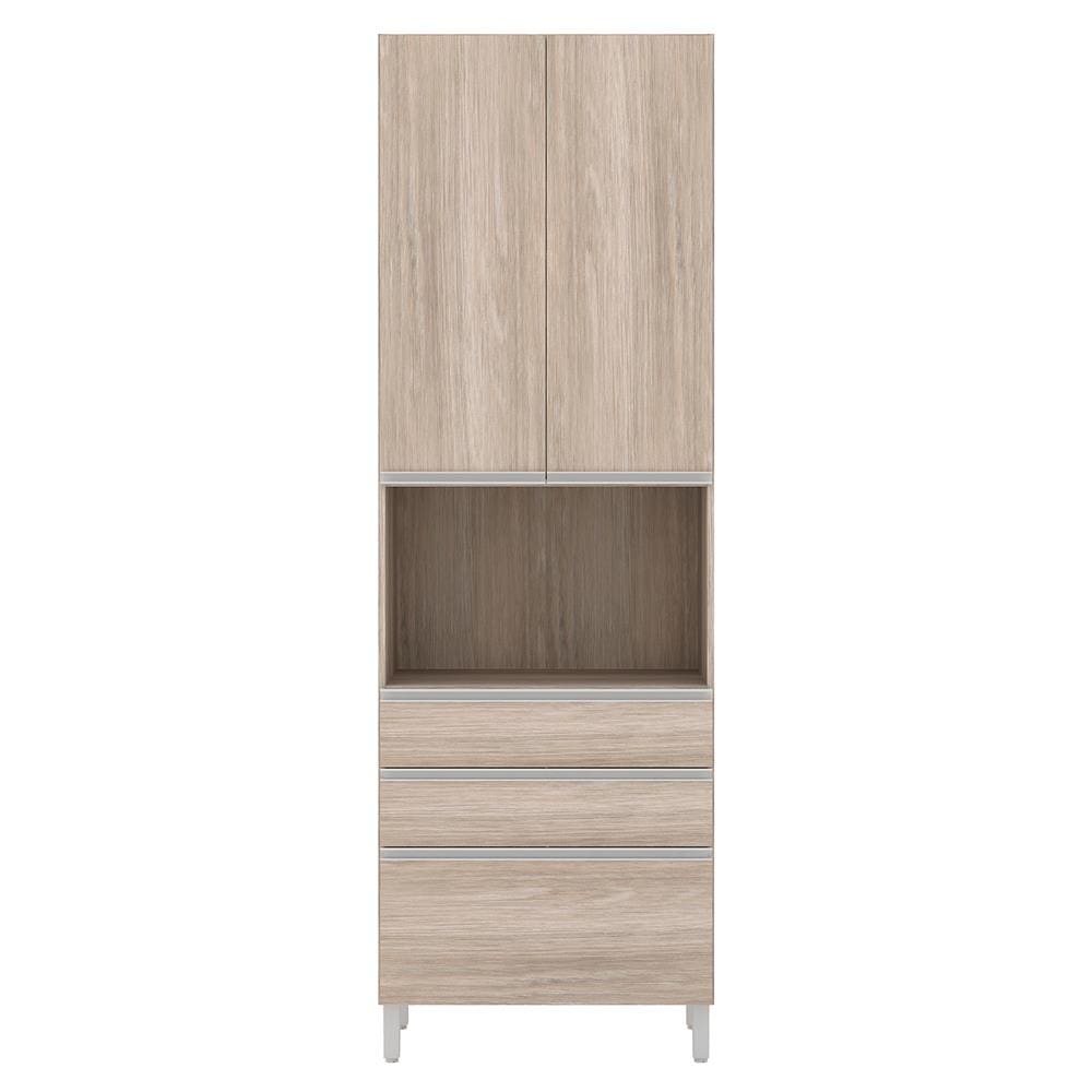 Feita em MDP de alta qualidade, ela possui acabamento Finish Foil que valoriza muito mais as peças, resistentes puxadores em alumínio, prateleiras internas que permitem uma melhor divisão, pés resistentes para ajudar com a estabilidade e nichos que podem ser usados para peças decorativas ou condimentos.