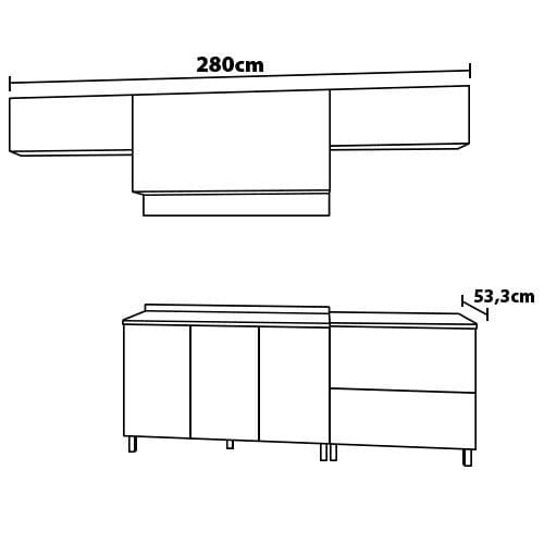 Conteúdo da Embalagem: - 1 Cozinha Completa Bartira Amazonita com 8 Portas, 1 Gaveta e 4 Prateleiras - 280cm de largura
