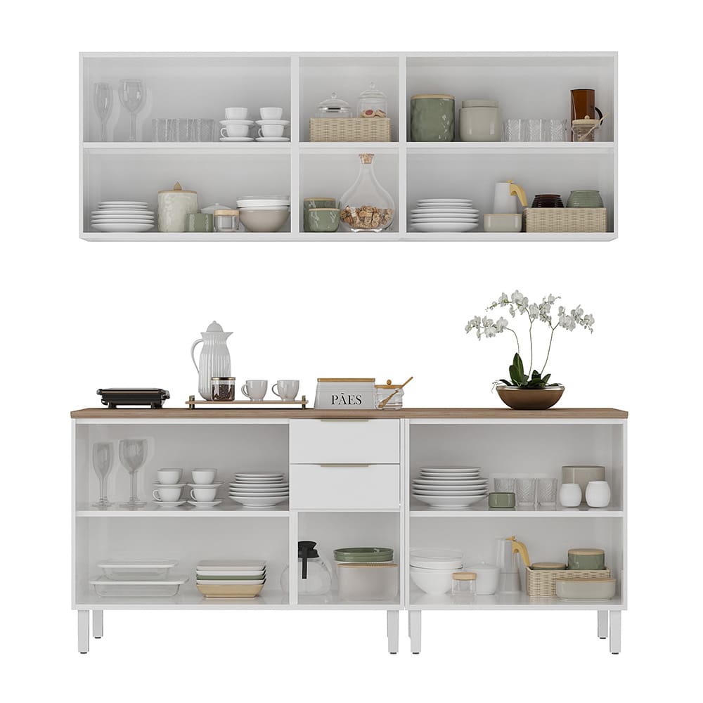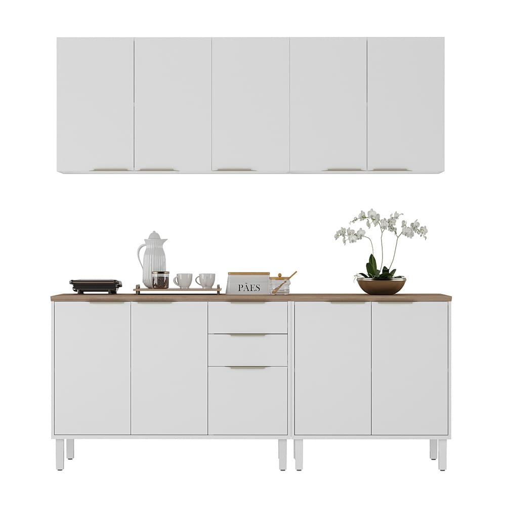 Conteúdo da Embalagem: -1 Cozinha Compacta Itatiaia Renova com 10 Portas, 2 Gavetas, 5 Prateleiras e 200cm de largura - Branco Neve;