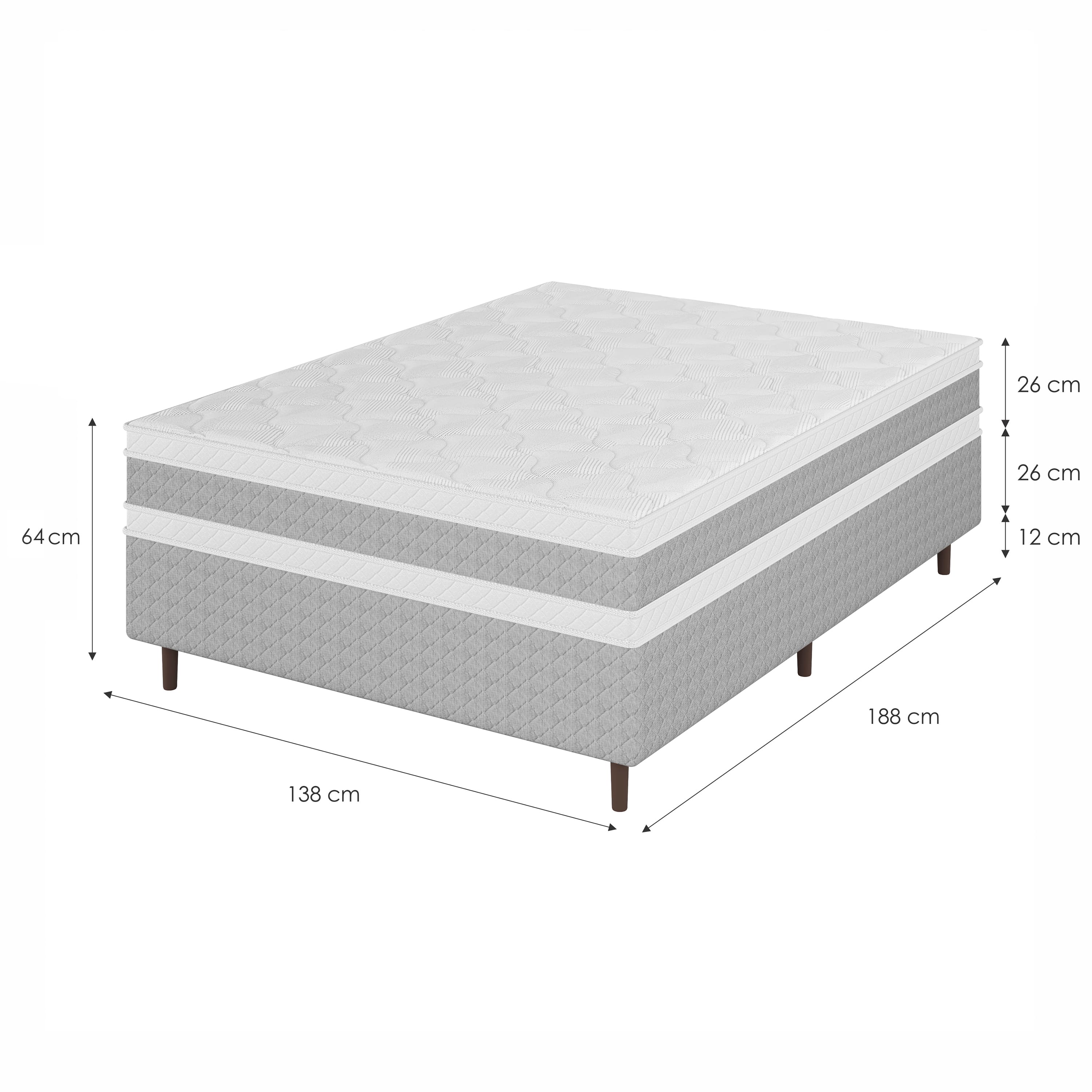 Seu sistema Euro Top e tecido em malha respirável proporciona frescor e regulam a temperatura, enquanto o tamanho compacto (26x138 x 188) é ideal para quartos menores sem perder o conforto.