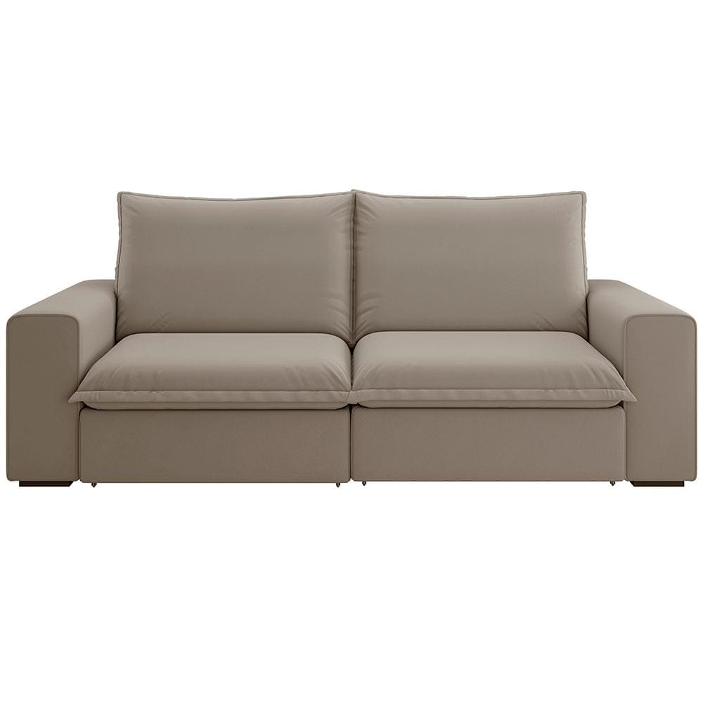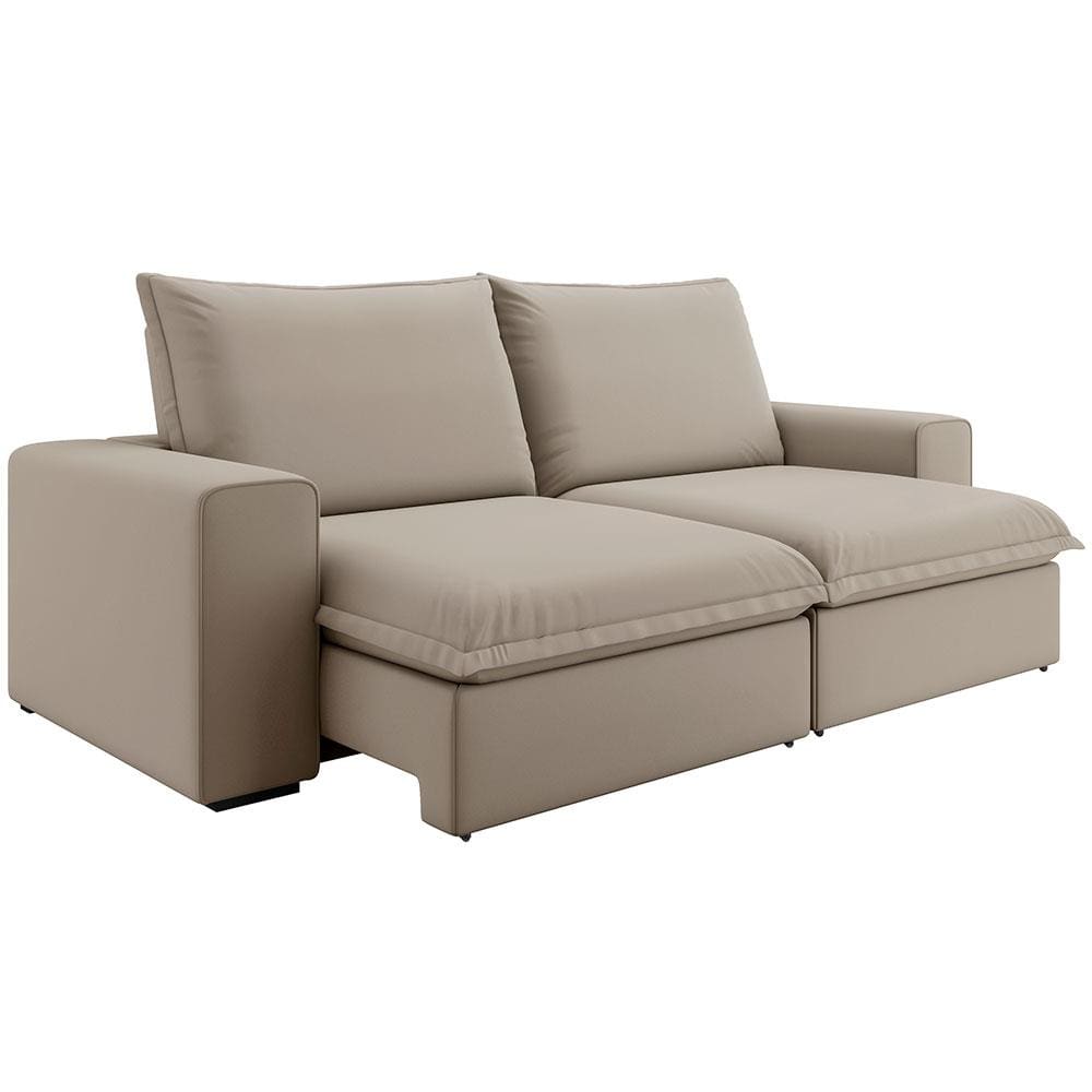 Características Gerais: - Estrutura em madeira eucalipto - Percinta elástica - Braços - Divisão entre lugares - Assento retrátil - Encosto reclinável - Densidade da espuma do assento: D28 - Almofadas do assento e encosto: fixas - Revestimento em tecido Veludo Slim - Pés resistentes - Suporta até 110kg, por assento - Sofá entregue em 2 volumes (Bipartidos)