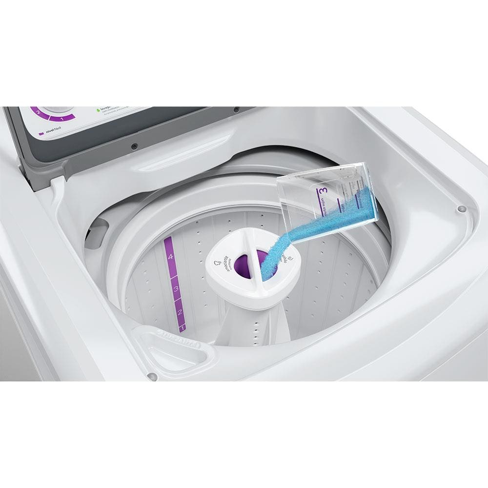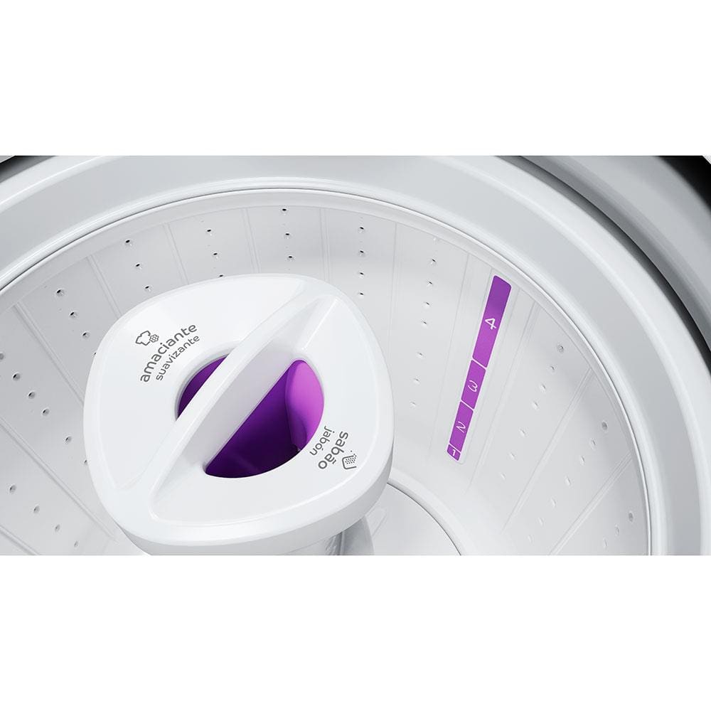 Sabão e amaciante entram em contato com as roupas no momento certo, evitando manchas.