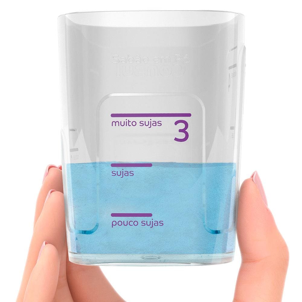 Saiba a medida ideal de sabão em pó para cada lavagem e economize até 70% de sabão[1] com o exclusivo copo dosador.