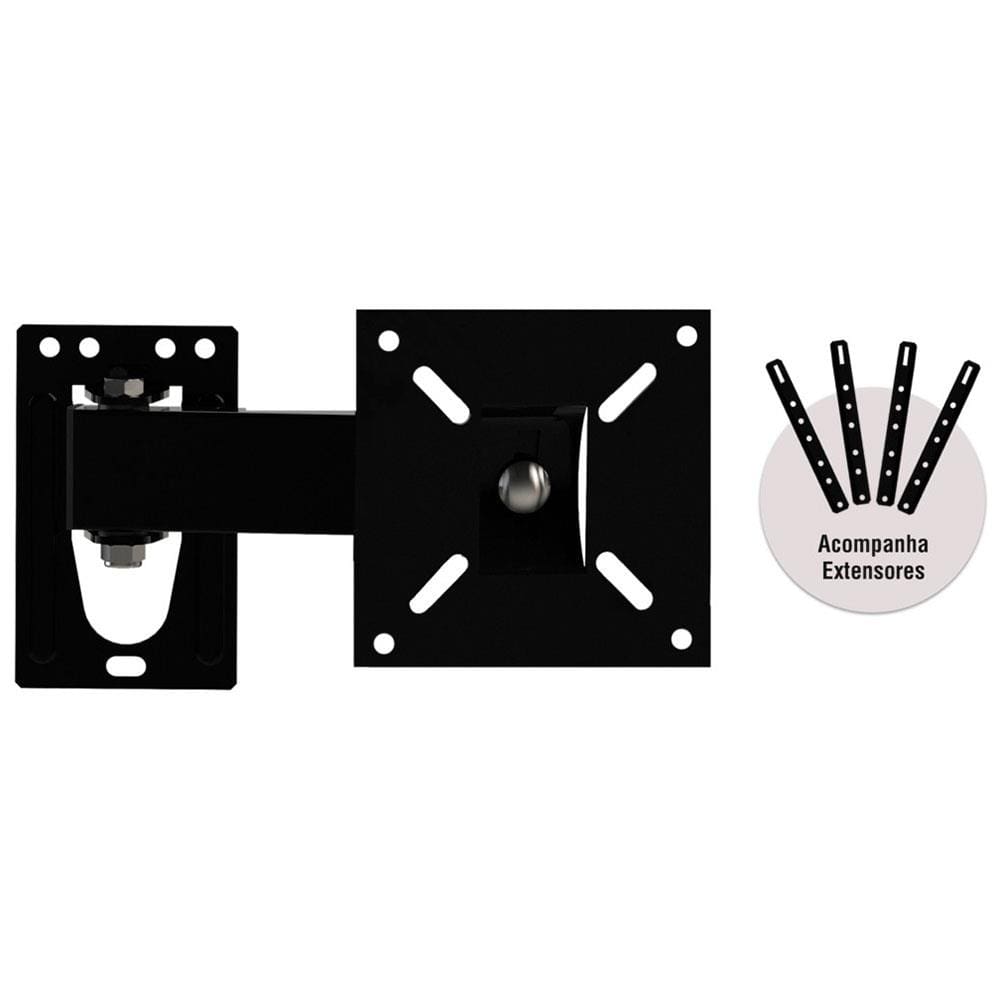 Com 4 pontos de fixação e compatível com diversos padrões de furação VESA, esse suporte comporta televisores de 10" até 56", sendo feito em aço carbono, com tratamento anticorrosivo e pintura eletrostática.