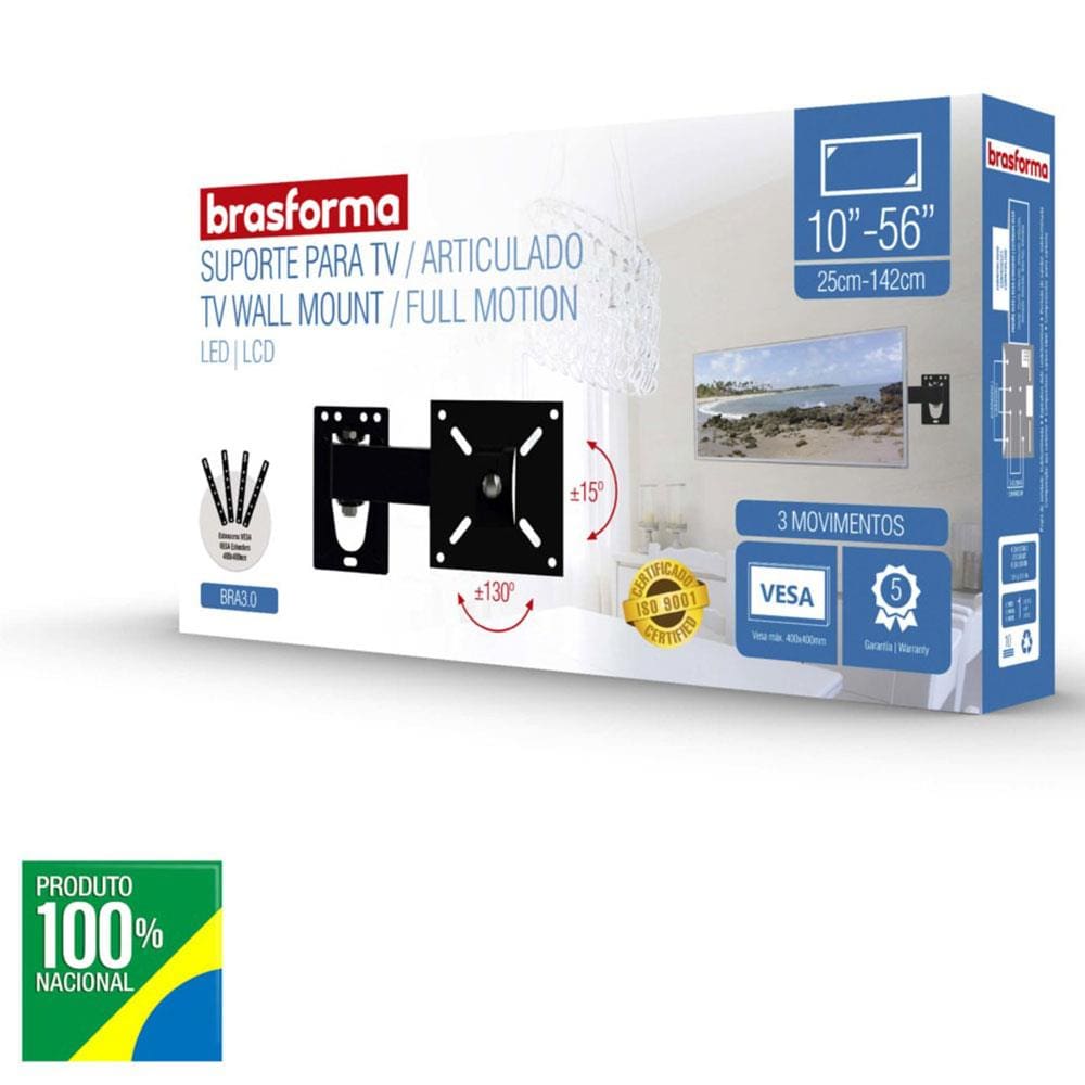 Suporte de Parede Articulado Brasforma BRA3.0 para TVs LED, LCD, Plasma, 3D e Smart TV de 10" a 56"