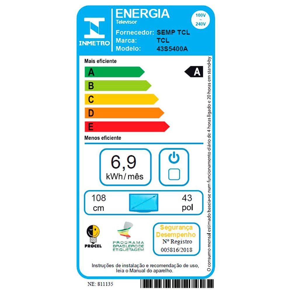 Tamanho da tela: 43"