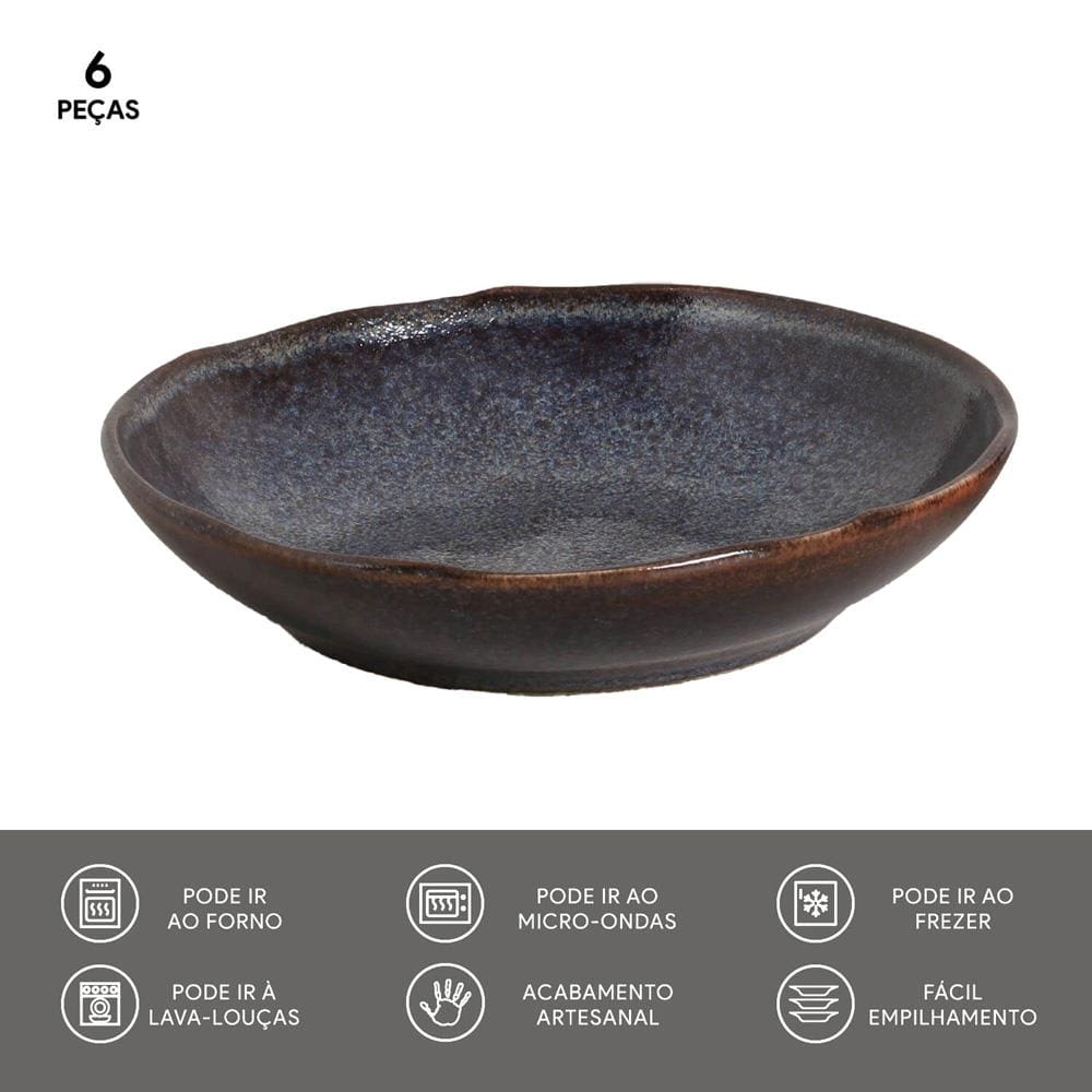 Conteúdo da Embalagem: -Conjunto de Pratos Fundos Porto Brasil Bio Titanium com 6 Peças - Azul;