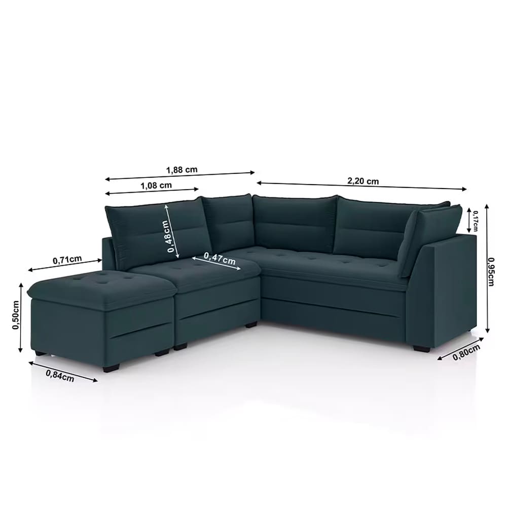 Sofá Modular de Canto 4 Lugares Luizzi Quebec com Pufe e Revestimento em Suede – 408cm de Largura