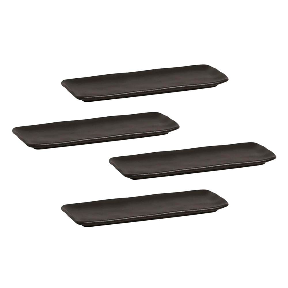 Conjunto de Travessas Retangulares Médias Porto Brasil Orgânico Preto Matte 33x13cm - 4 peças
