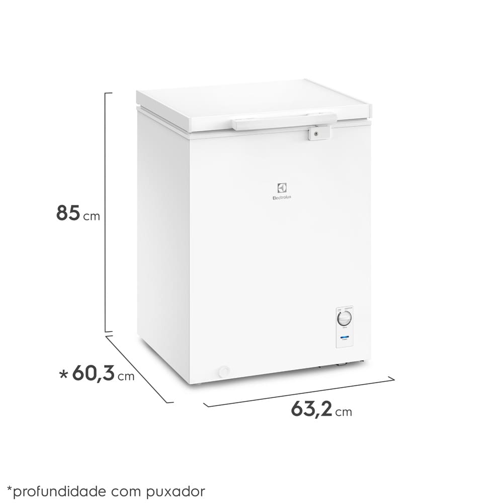 Conteúdo da embalagem: -1 Freezer Horizontal Electrolux HE150 143 litros com função Turbo Freezer - Branco; -Manual de instruções.