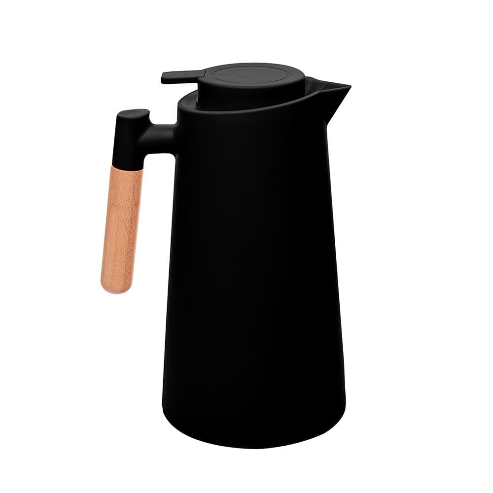 Garrafa Térmica Lyor Escandinávia 1L Preta Cabo de Madeira Design Moderno