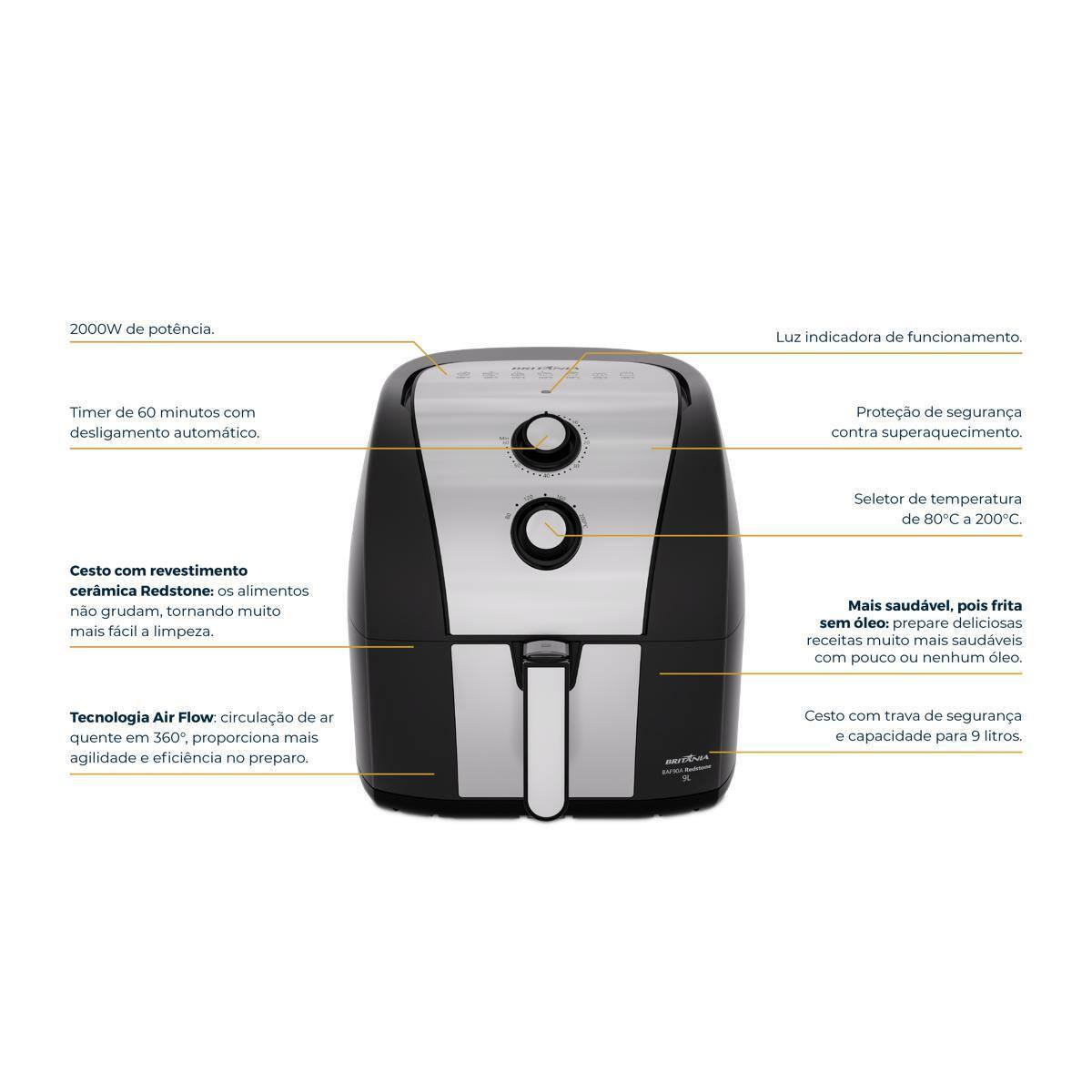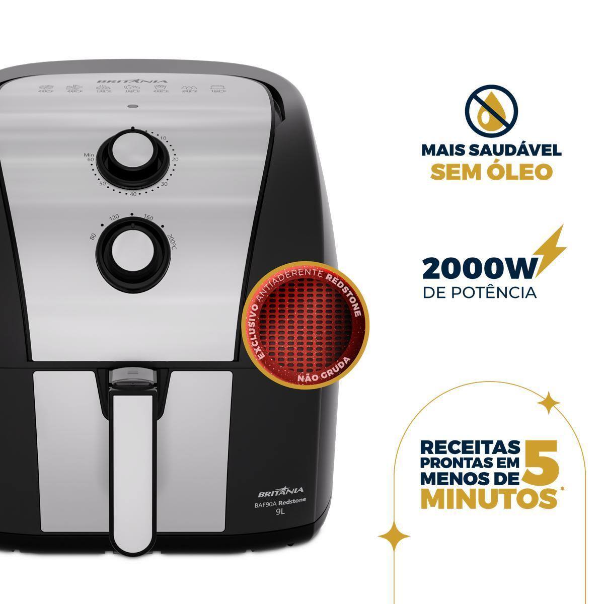 Fritadeira Eletrica Britânia BAF90A Redstone 9L 2000W Air Flow Preta