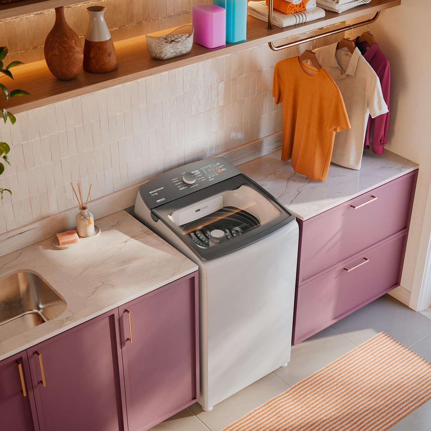 Design Compacto: lave mais ocupando menos espaço. A Brastemp 14kg é a lavadora de maior capacidade com o menor tamanho da categoria, com dimensões (AxLxP):104,5x57,4x63,5cm, serve em qualquer canto.