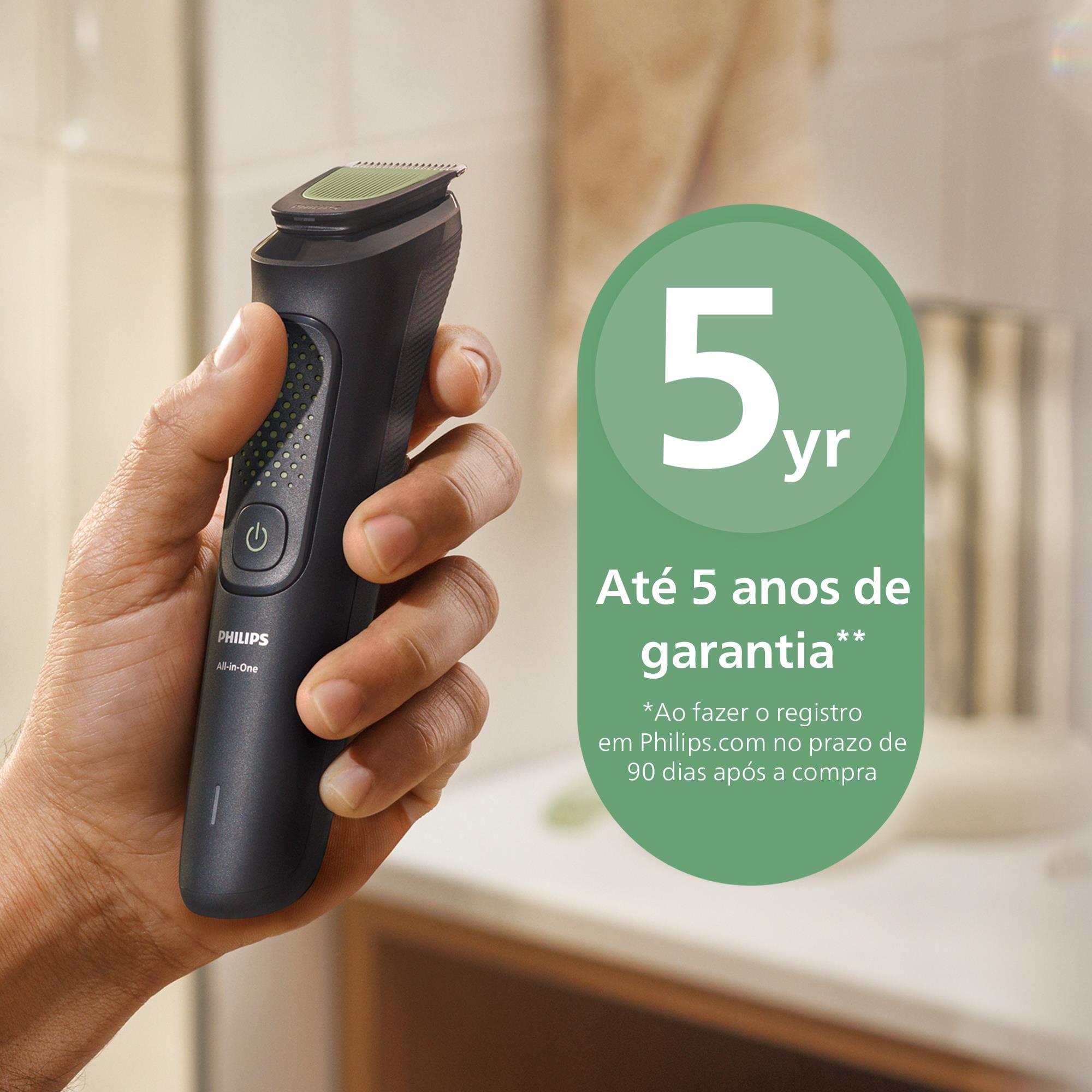 Com 5 anos de garantia e 90 dias para testar, a Philips reafirma seu compromisso com qualidade e satisfação. É a marca nº1 em aparadores de pelos no mundo, segundo estudo da GemSeek Consulting Ltd.