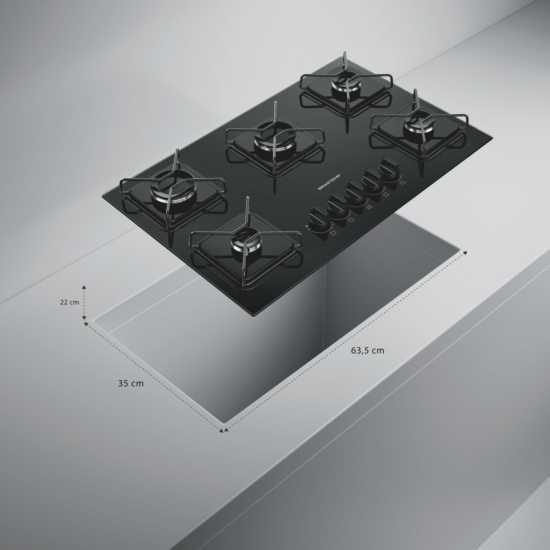 Cooktop 5 Bocas Brastemp BDD75BE Mesa de Vidro Grade de Aço Ferro Aramado Bivolt Preto
