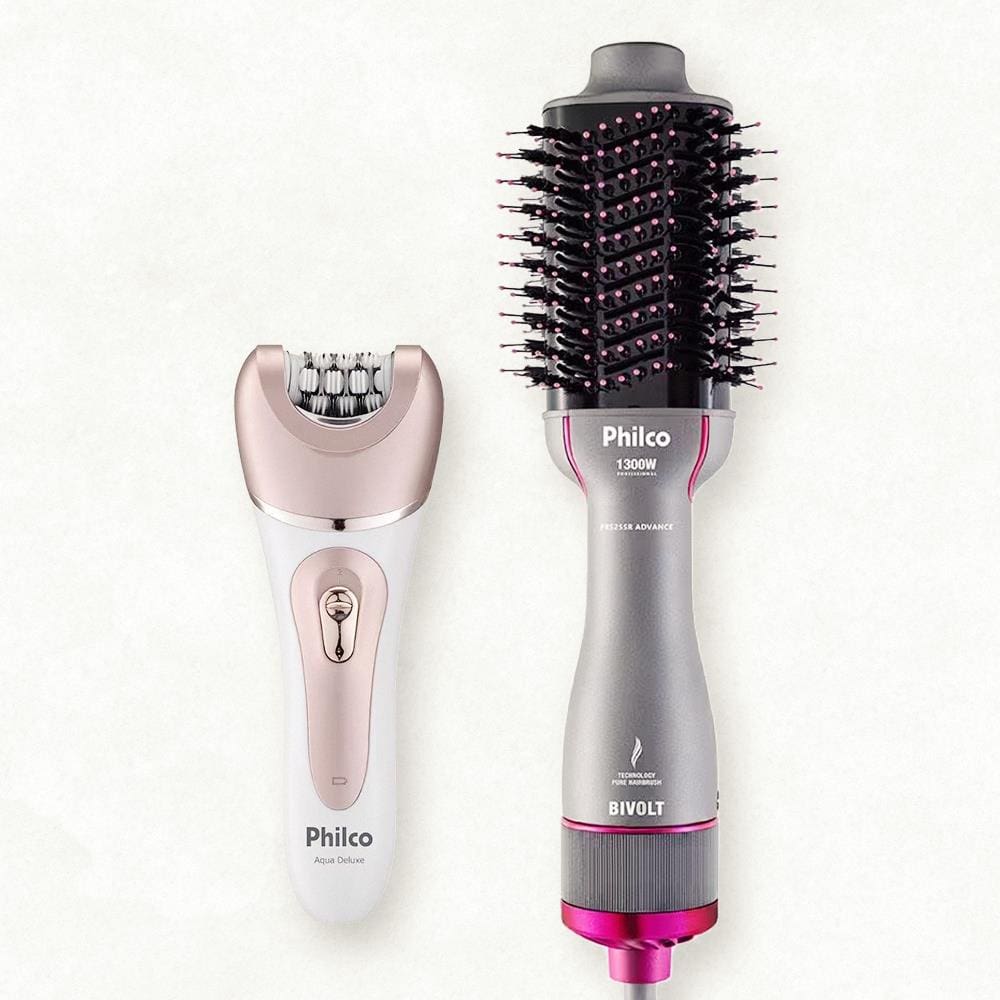 Escova Secadora Philco Advance PES25SR 1300W - Cinza e Rosa + Depilador Philco Aqua Deluxe PDP01 - Rosa