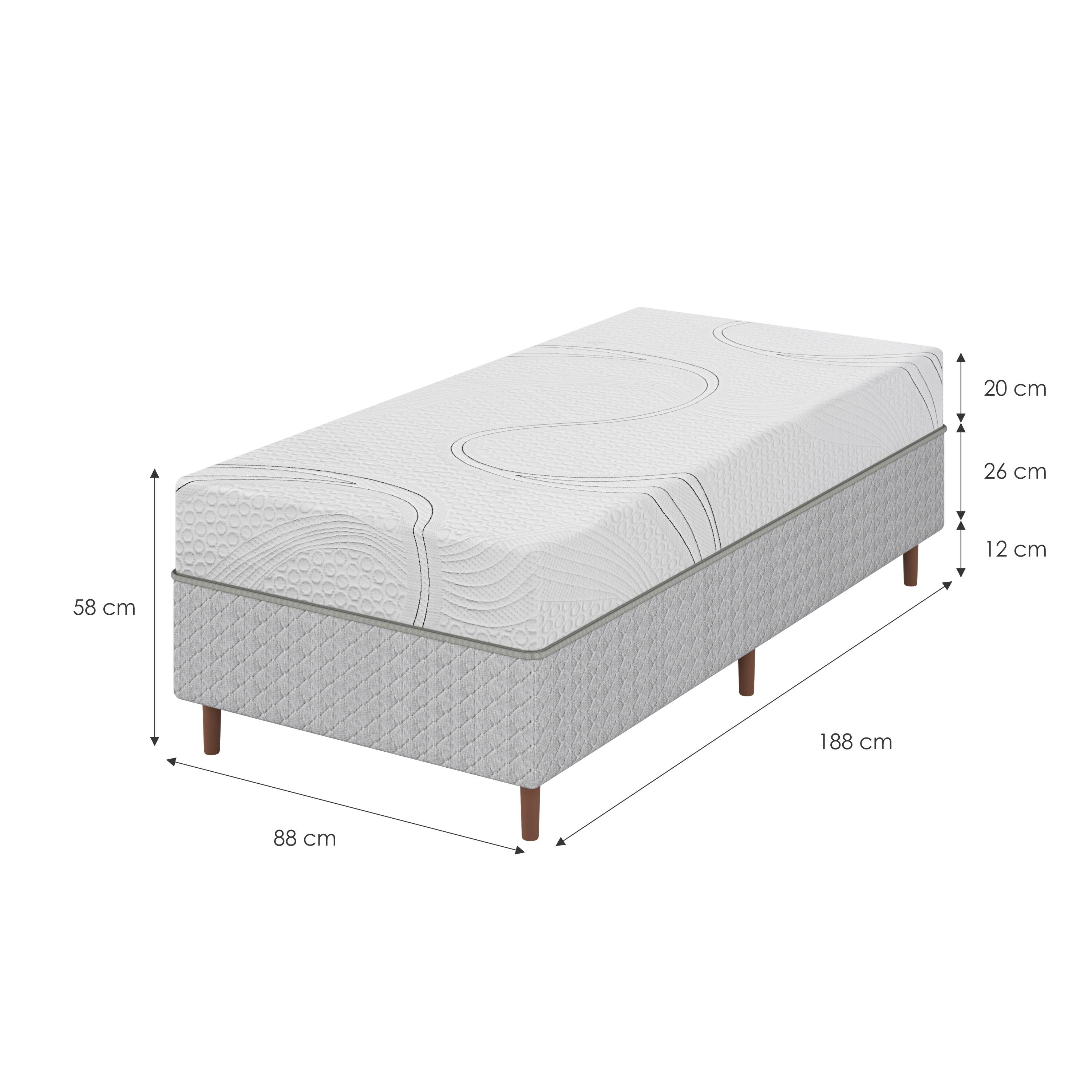 - Medidas: 26 cm (A) x 88 cm (L) x 188 cm (C) – tamanho solteiro padrão.