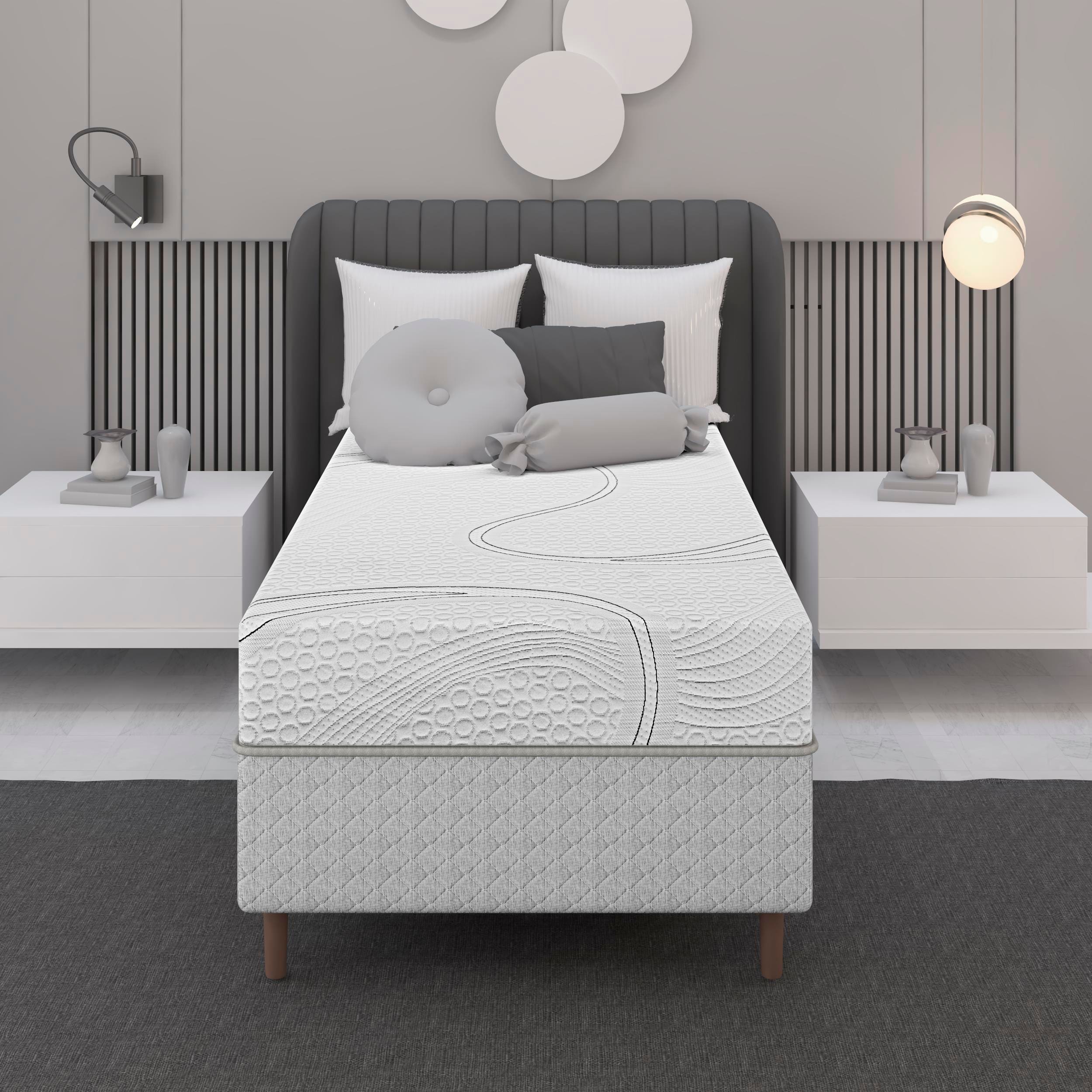 Colchão Bartira Viena Solteiro + Cama Box Umaflex Loreto Solteiro Cinza