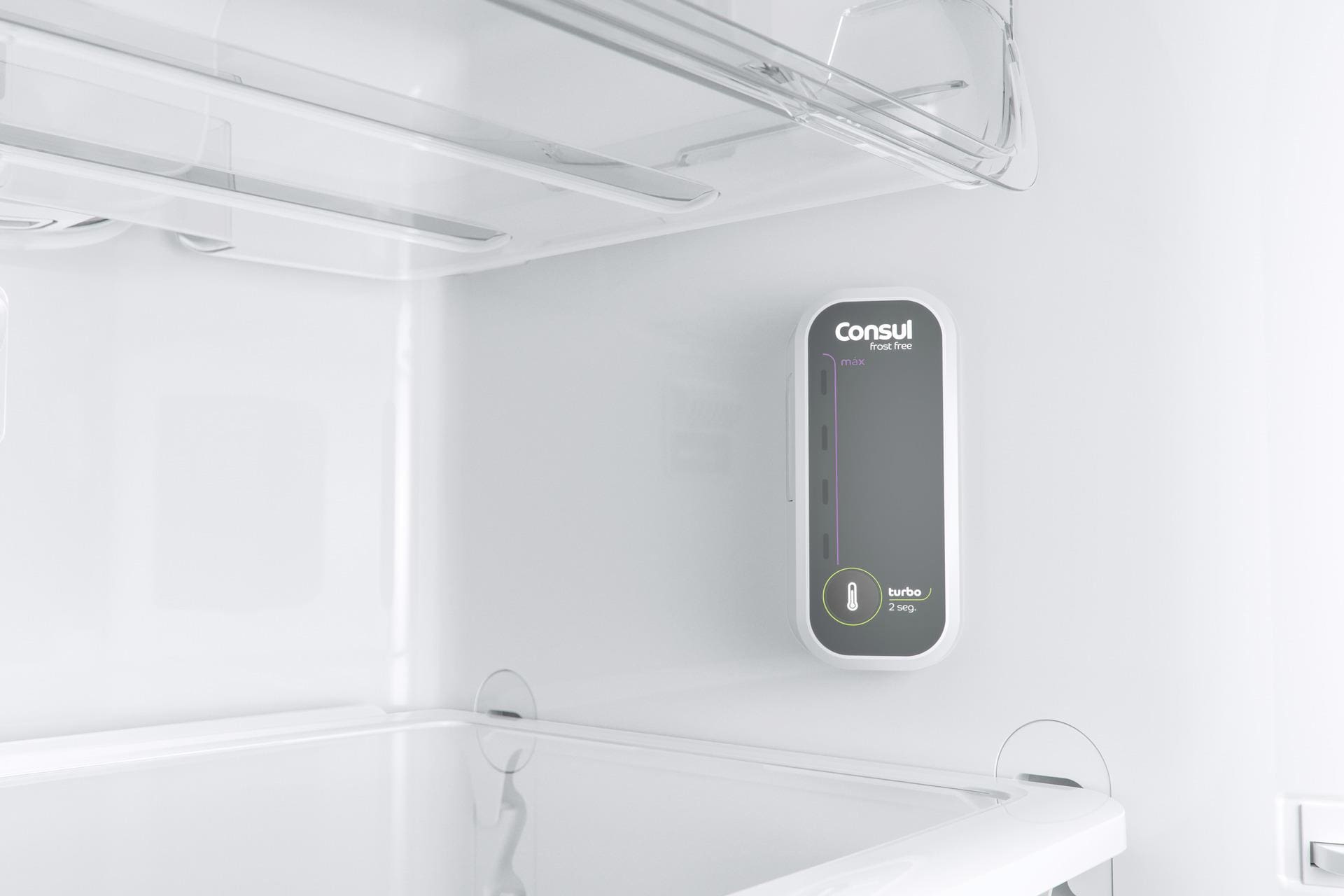 A Função Turbo garante resfriamento rápido, ideal para momentos em que a geladeira está cheia ou em ocasiões especiais. Já a tecnologia Frost Free evita o acúmulo de gelo, eliminando a necessidade de descongelamento manual.